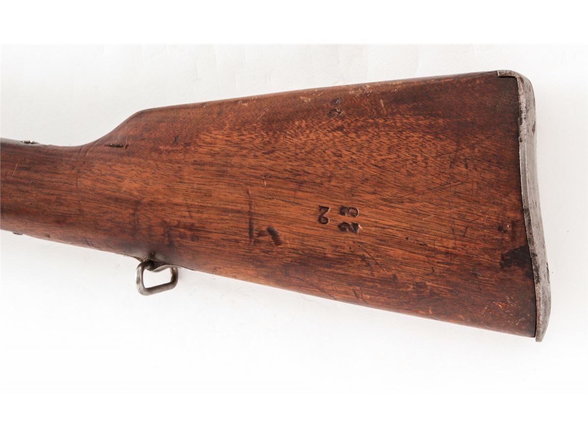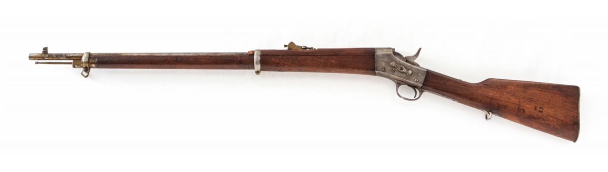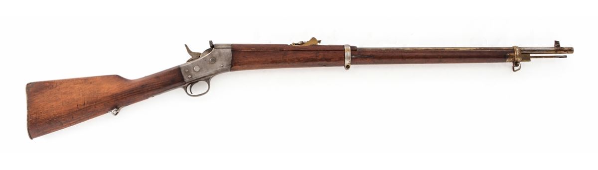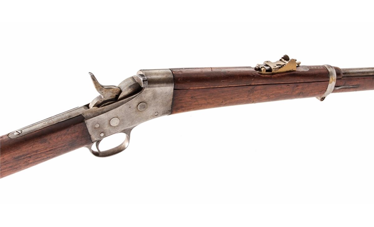 Remington Rolling Block Rifle, NVSN, 7mm cal., 30'' barrel, bright finish, case hardened frame, walnut stock and forend. Condition is good with light to moderate corrosion to exposed portion of barrel. Stock with scuffs and scratches. Action is good, bore is dark. Est.: $150-$300. (Antique)