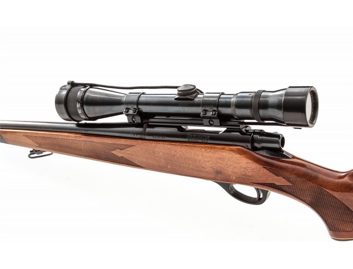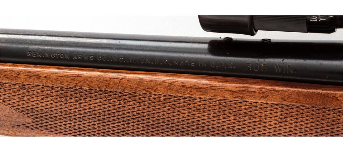 Remington Model 660 Bolt Action Rifle, #6224714, .308 cal., 20'' barrel, blue finish, pressed checkered walnut stock, with Weaver V9 scope on Weaver rings and mounts. Condition is excellent. Metal surfaces retain approx. 98% blue. Stock with light impressions from handling. Good action and bore, clear scope optics. Est.: $450-$600. (Modern)