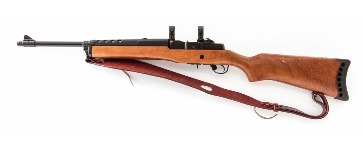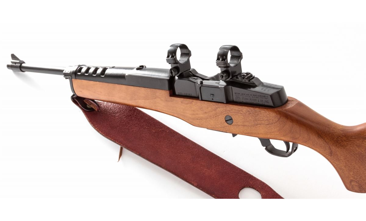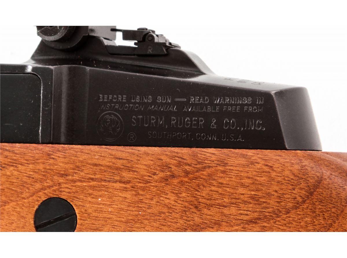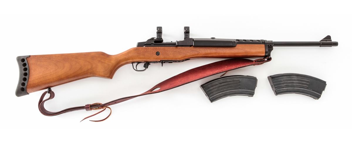 Ruger Mini-30 Semi-Automatic Rifle, #189-03382, 7.62x39 cal., 18'' barrel, blue finish, birch stock, with rubber butt pad. Factory integral scope rings, one standard 5-round magazine and two (2) 20-round magazines. Condition is excellent showing light marks from handling. Est.: $600-$800. (Modern) (High-cap mags not available to Calif. residents.)