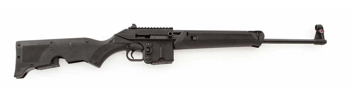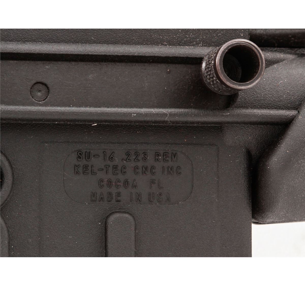 Keltec SU-16 Semi-Automatic Rifle, #N1633, .223 cal., 18'' barrel, matte finish, synthetic stock, with one extra magazine, fiber-optic front sight, with folding stock and integral bipod. Condition is excellent, appearing near new, in original box with instructions. Est.: $400-$600. (Modern)