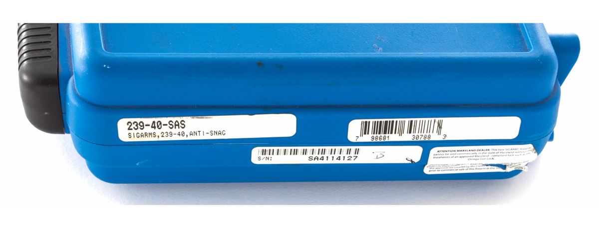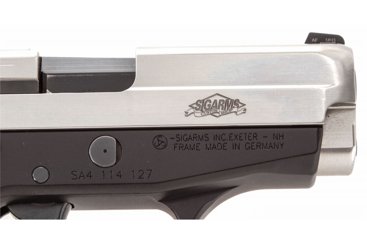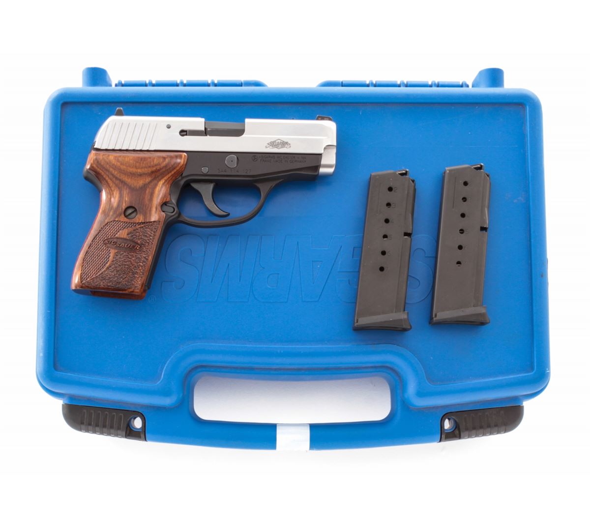 Sig Sauer Model P239 SAS Double Action Only Semi-Automatic Pistol, #SA4114127, .40 S&W cal., 3-1/2'' barrel, matte black frame, stainless slide, laminated checkered Sig grips, with two (2) factory magazines. Condition is excellent, appearing as new, in original box. Est.: $500-$750. (Modern/PPT)