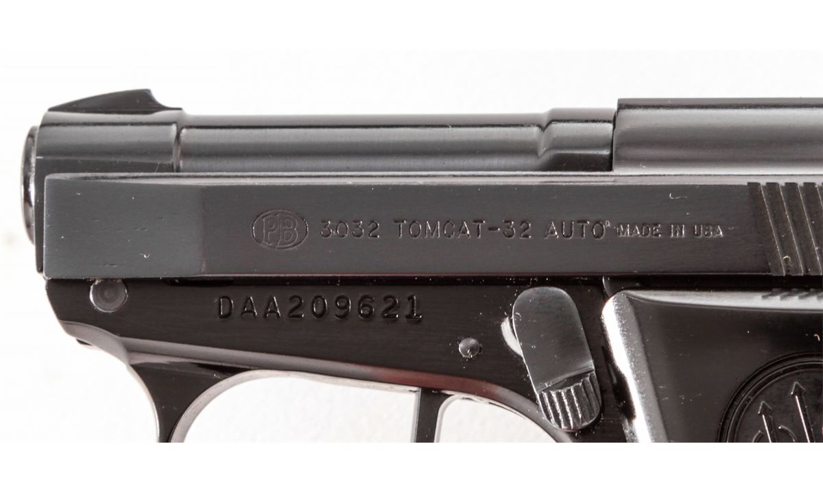 Beretta Model 3032 Tomcat Semi-Automatic Pistol, #DAA209621, .32 ACP cal., 2-1/2'' barrel, blue finish, factory checkered black plastic grips, with one magazine. Condition is excellent, appearing as new, in its original box. Est.: $200-$400. (Modern/PPT)