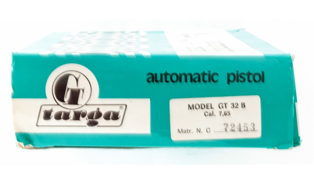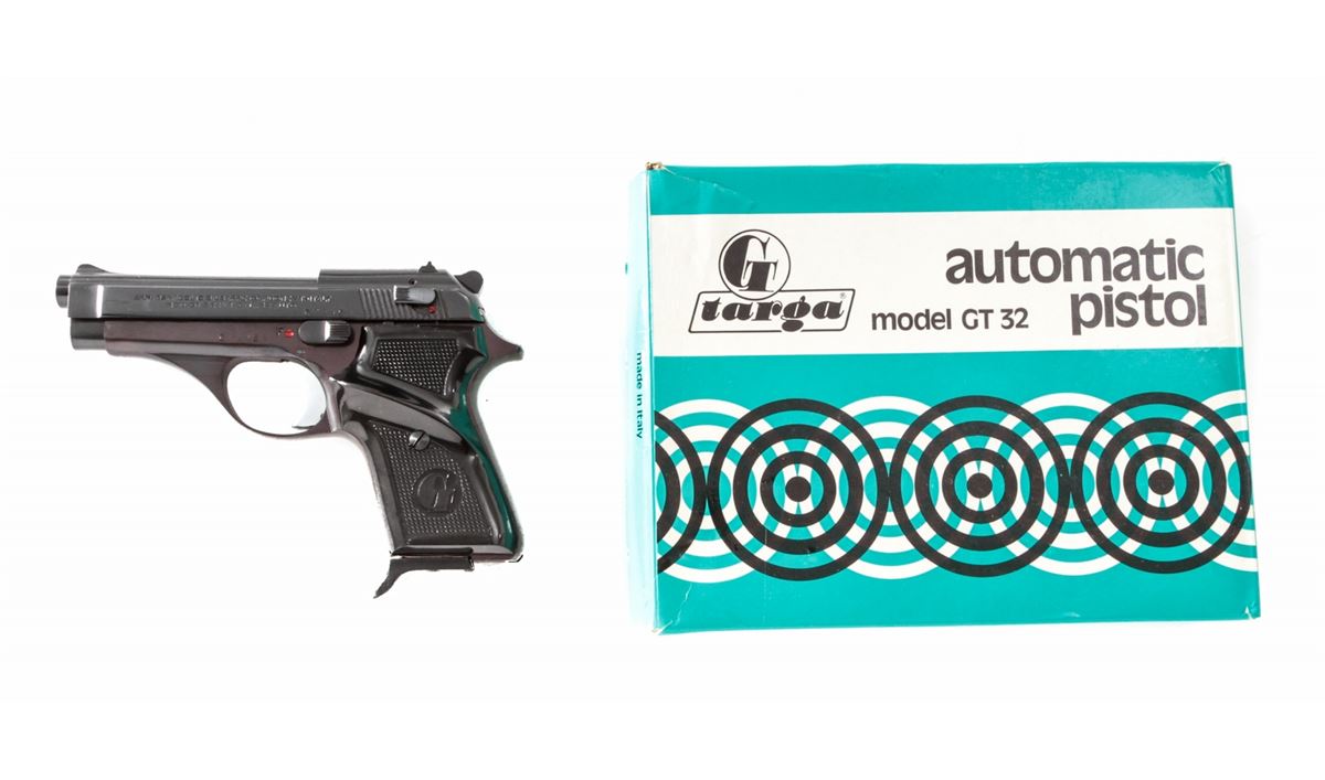 Tanfoglio Targa Model GT 32 Semi-Automatic Pistol, #C72453, .32 ACP cal., 3.75'' barrel, blue finish, black checkered plastic grips, in original box. Condition is excellent, appearing as new. Est.: $200-$400. (Modern/PPT)