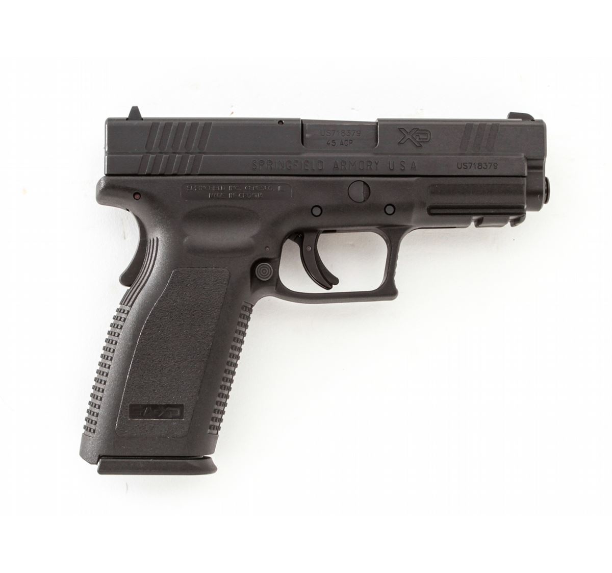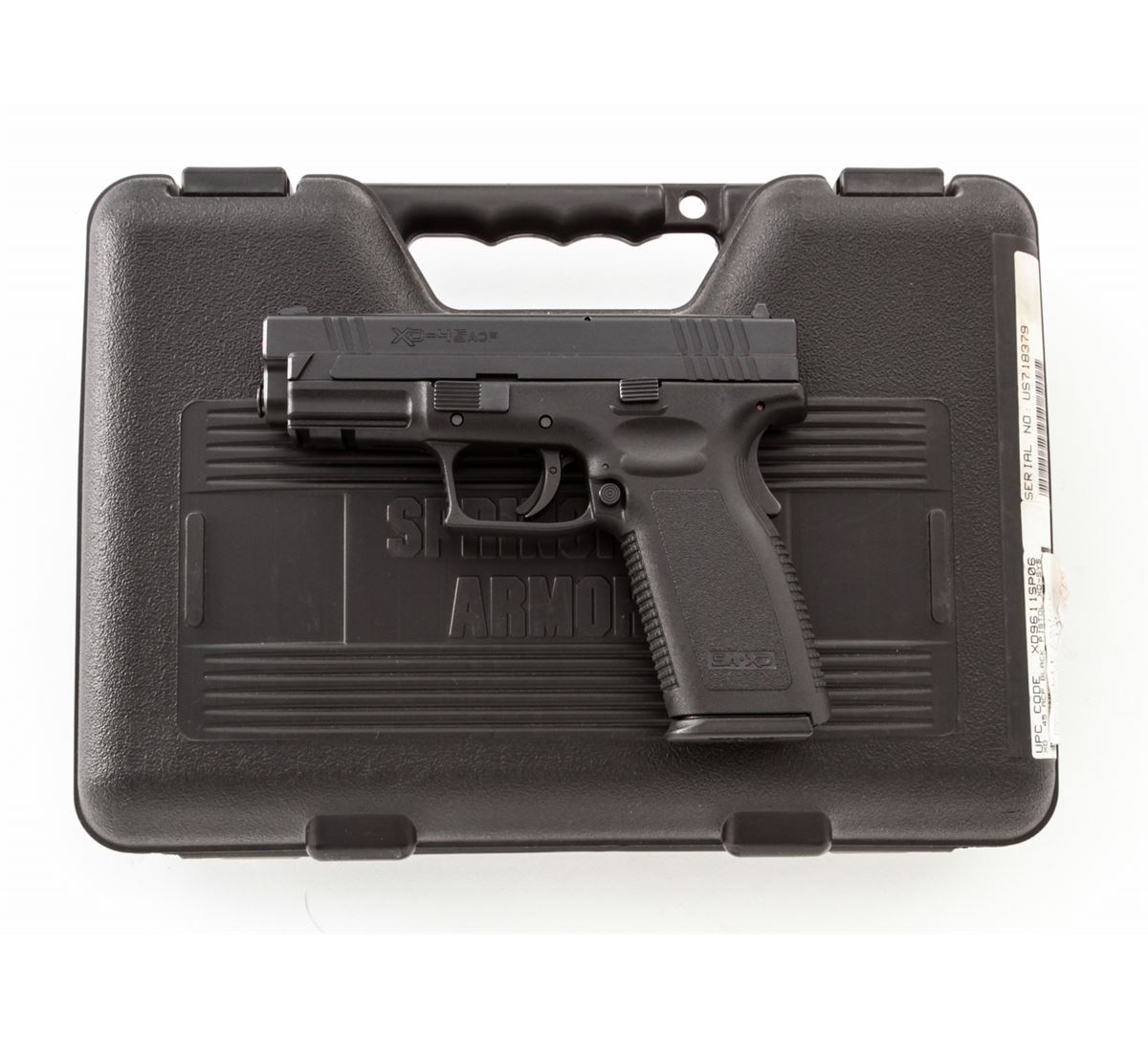 Springfield Armory XD-45 Semi-Automatic Pistol, #US718379, .45 ACP cal., 4'' barrel, matte finish, polymer grip frame, with two (2) 10-round magazines, and factory molded tactical holsters. Condition is excellent, appearing as new, in original hard case. Est.: $350-$500. (Modern/PPT)