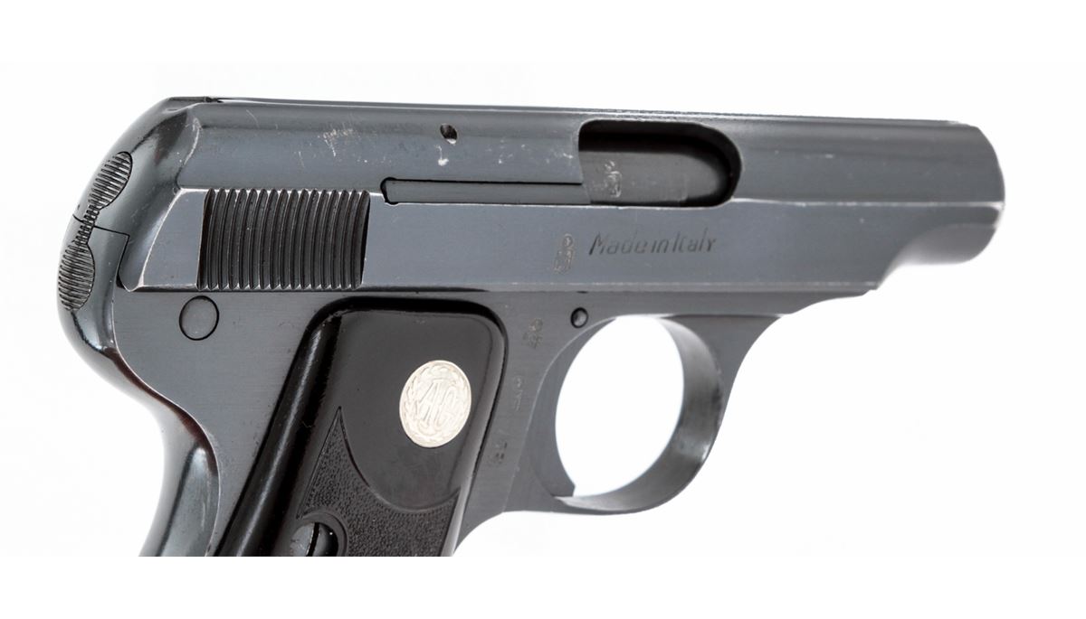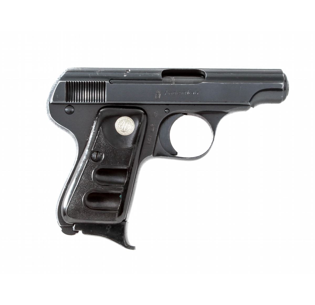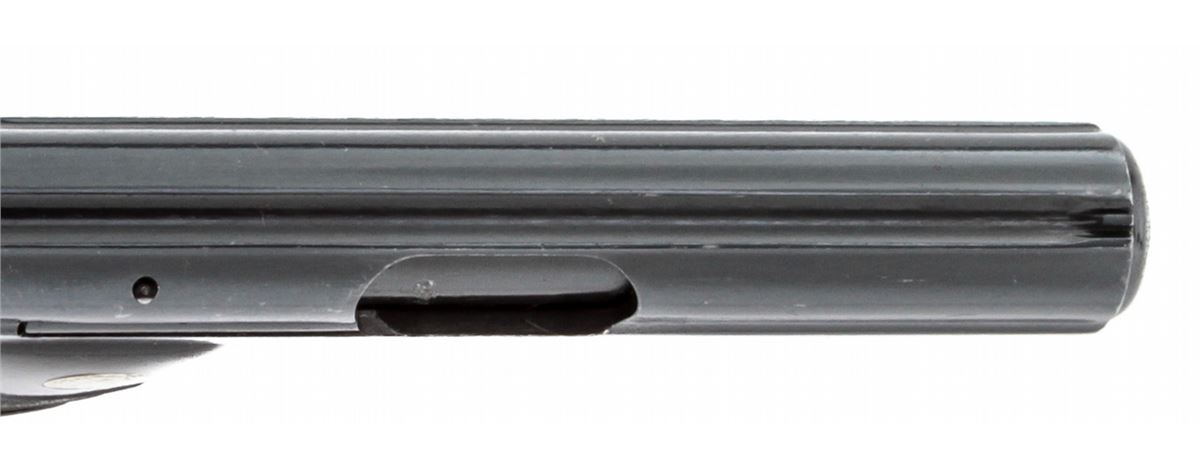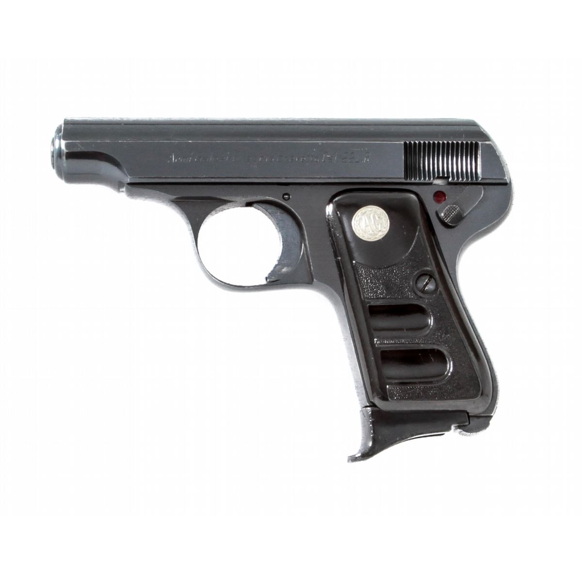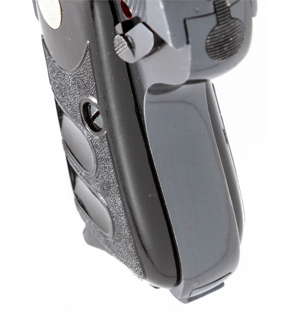 Galesi Semi-Automatic Pistol, #105437, .22 LR cal., 3'' barrel, blue finish, contoured black plastic grips with ''AG'' medallions, with one finger-rest magazine. Mfg'd 1957. Condition is near excellent retaining approx. 97% blue. Crisp grips and action, fine bore. Est.: $150-$300. (C&R/PPT)