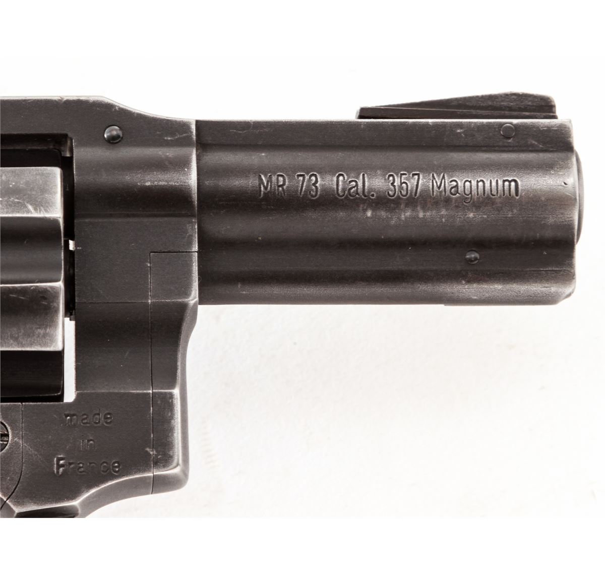 Manurhin MR73 Double Action Revolver, #B14779V, .357 mag. cal., 3'' barrel, matte finish, Trausch rubber grips. Condition is very good retaining 85%-90% finish. Grips and action are crisp, bore is fine. Made in France and import marked to left side top portion of barrel rib. Est.: $250-$450. (Modern) (Not available to Calif. residents.)