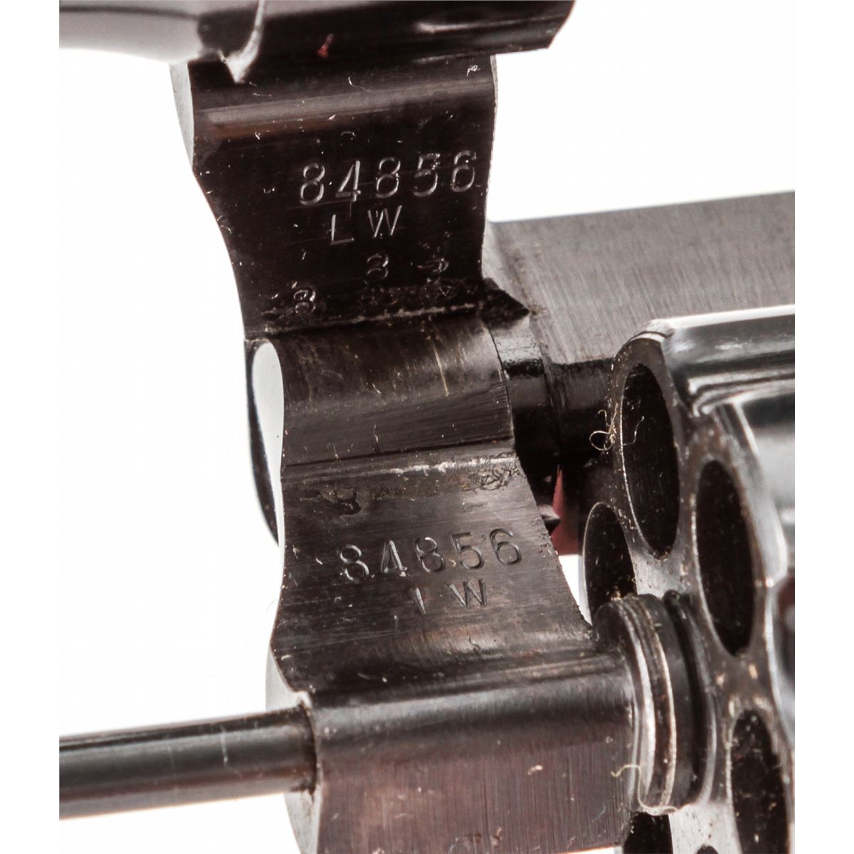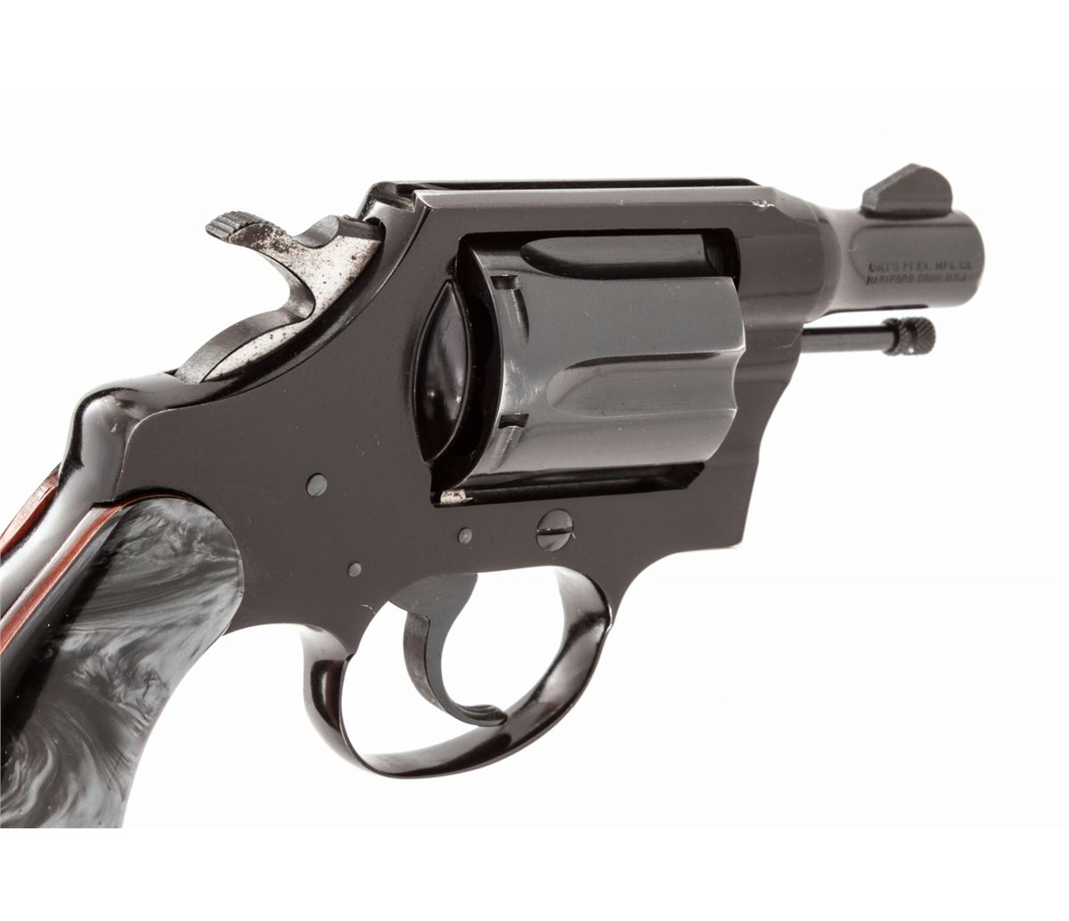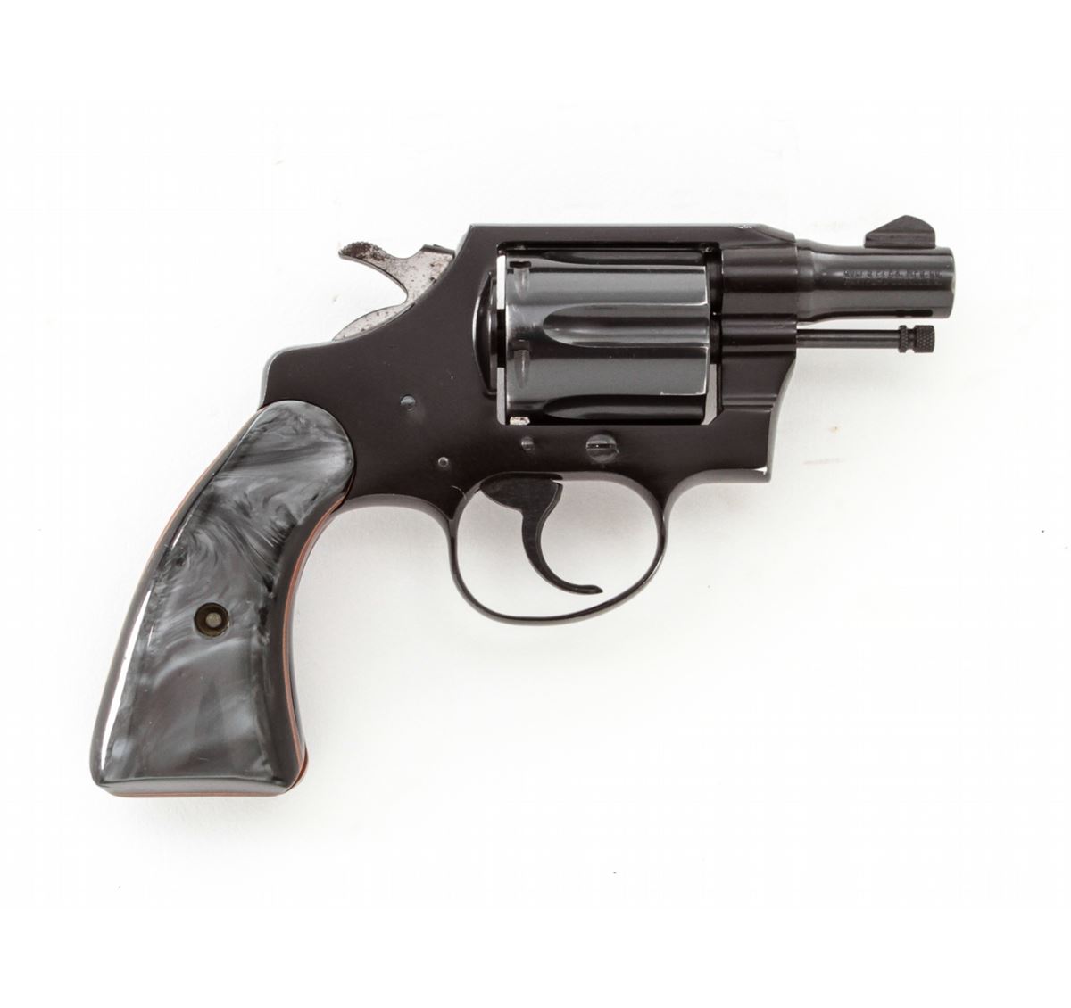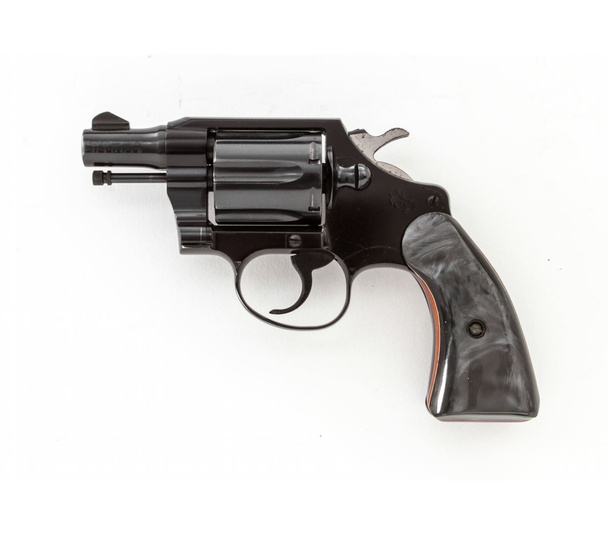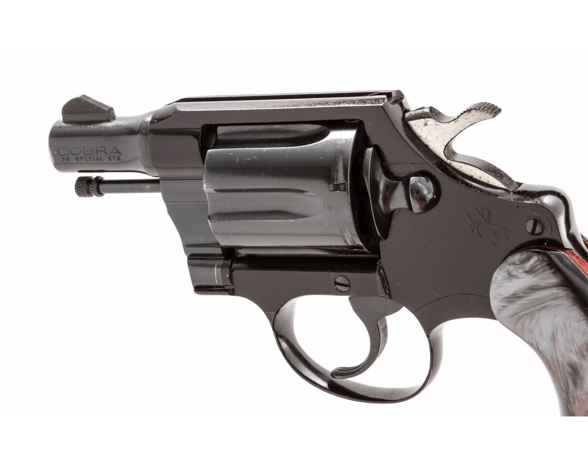 Colt Cobra Double Action Revolver, #84856LW, .38 Spec. cal., 2'' barrel, blue finish, alloy frame, smokey pearl francite grips. Condition is excellent showing only light use as thin muzzle wear. Interior with dried grease and should be cleaned. Grips and action are excellent, bore is bright. Est.: $350-$500. (C&R/PPT)