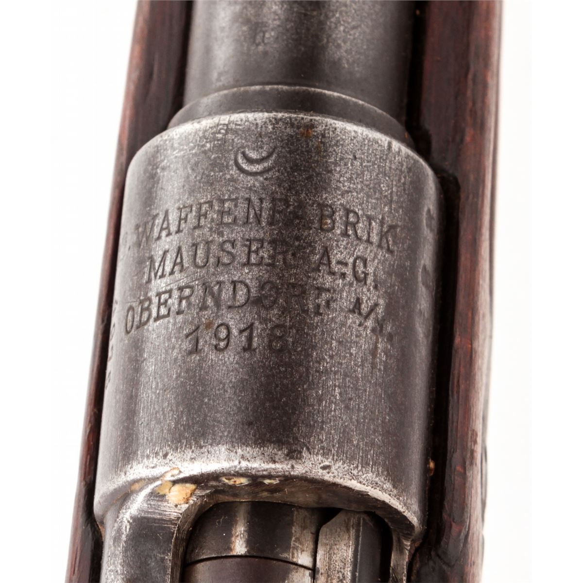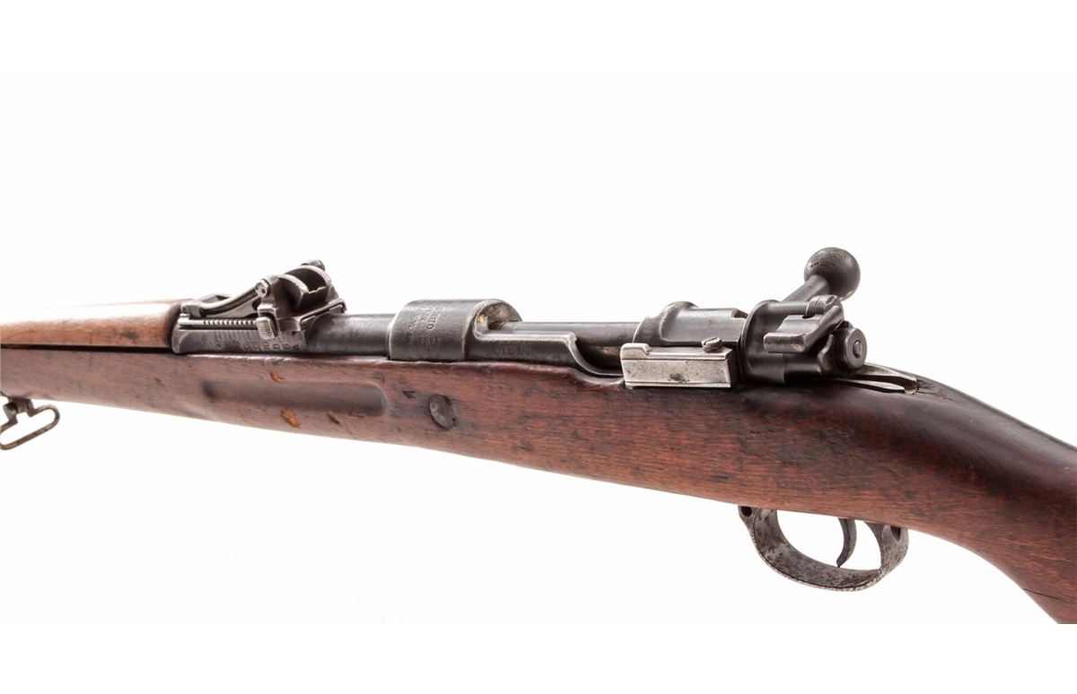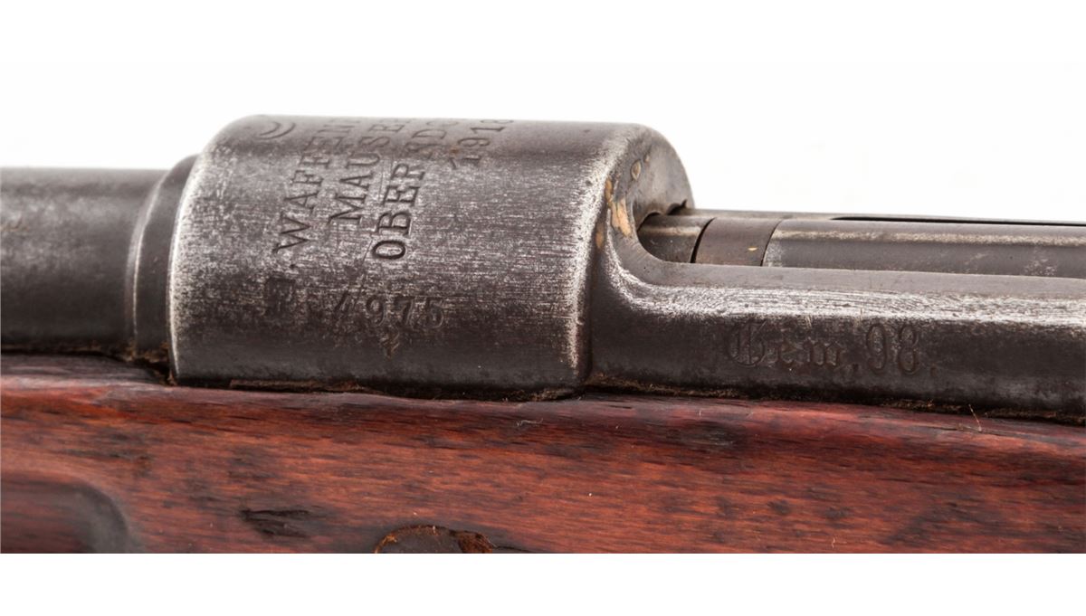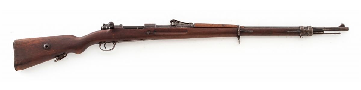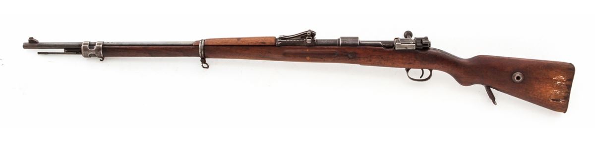 Turkish Contract GEW 98 Bolt Action Mauser, by Mauser-AG (1918), #4975f, 8mm, 29-1/2'' barrel, blue finish, walnut stock, with Grand Vizier rear sight. Condition is good to very good retaining approx. 40% thinning and moderately toning finish. Mixed small parts. Stock with even moderate wear. Good action, dark bore. Est.: $125-$250. (C&R)