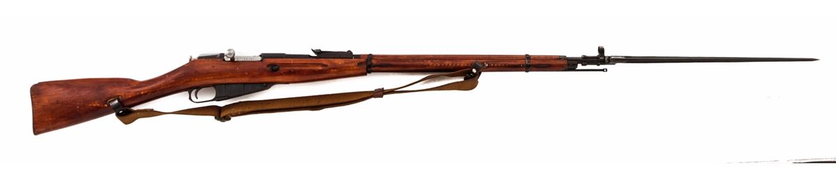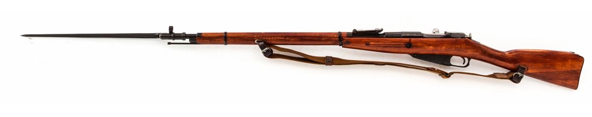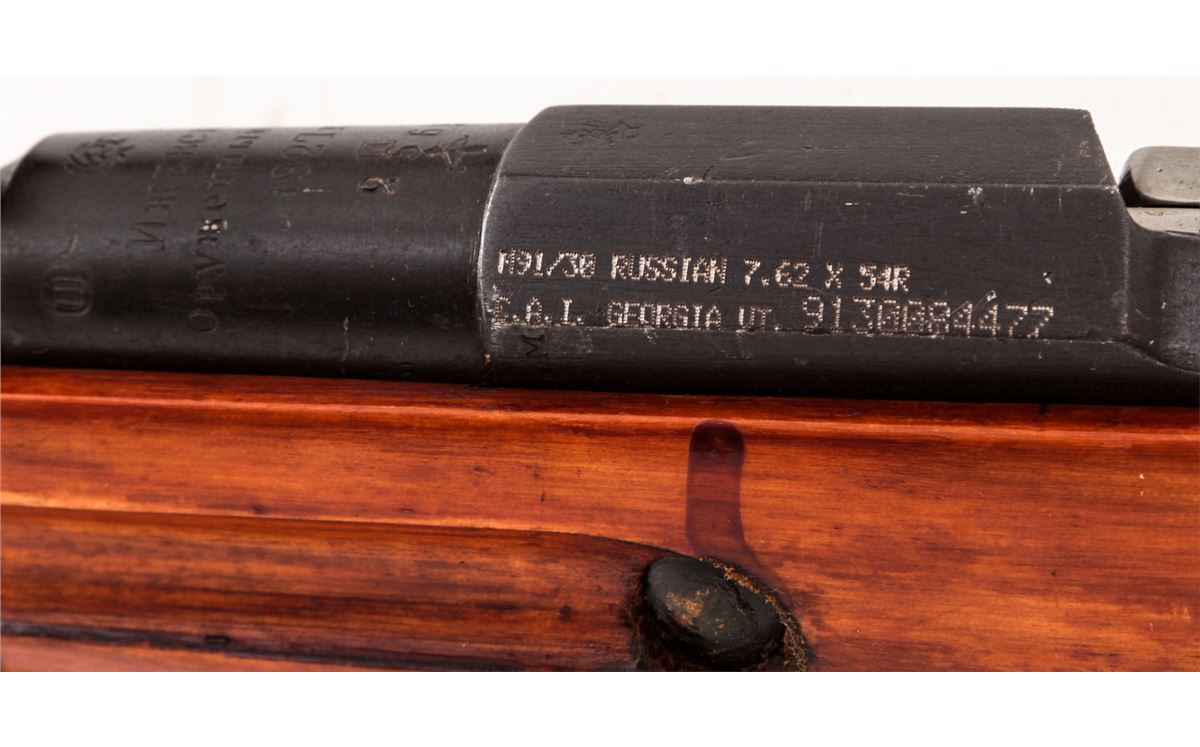 Mosin-Nagant M91/30 Bolt Action Rifle, #9130084477, 7.62x54R cal., 29'' barrel, arsenal blue finish, beech stock, with sling and spike bayonet. Condition is fine as arsenal refinished, retaining approx. 95% blue. Stock shows light handling marks. Good action, very good bore. Import marked to receiver flat. Est.: $125-$250. (C&R)