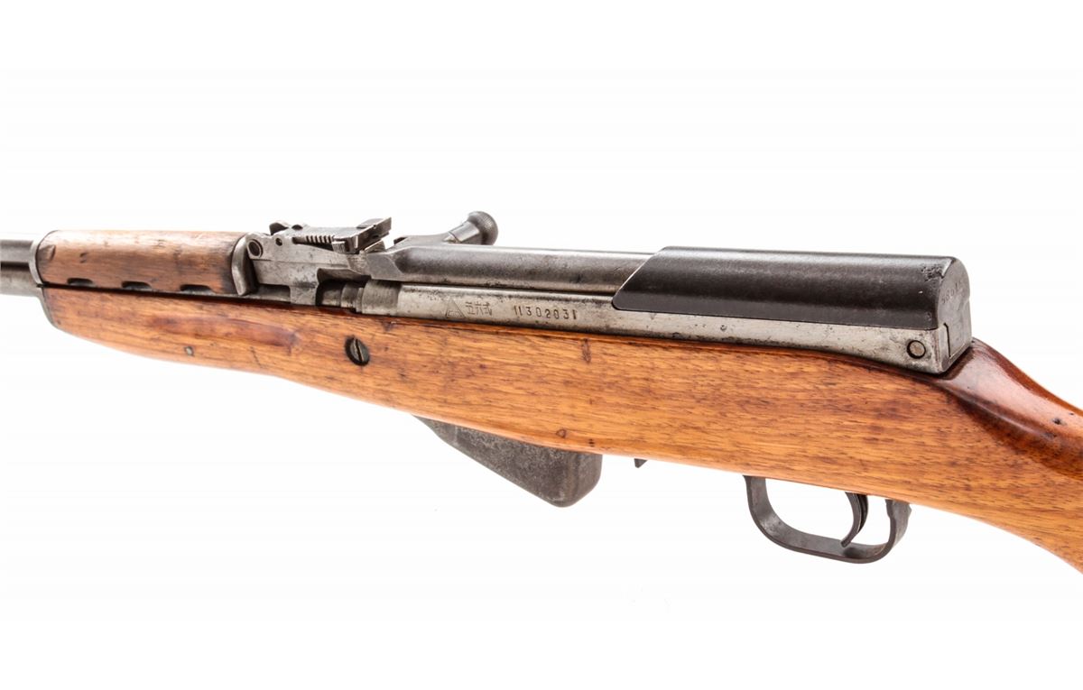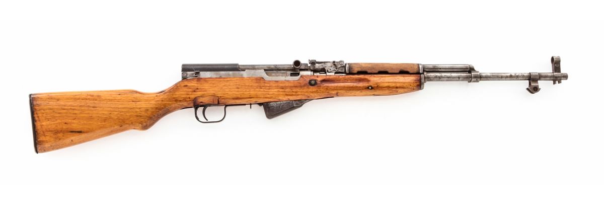 Chinese SKS Semi-Automatic Rifle, #11302031, 7.62x39mm, 20'' barrel, originally with blue finish, Asian hardwood stock. Condition is fair retaining little original blue with added finish to stock. Mixed numbered. Good action and bore. Est.: $200-$400. (C&R)