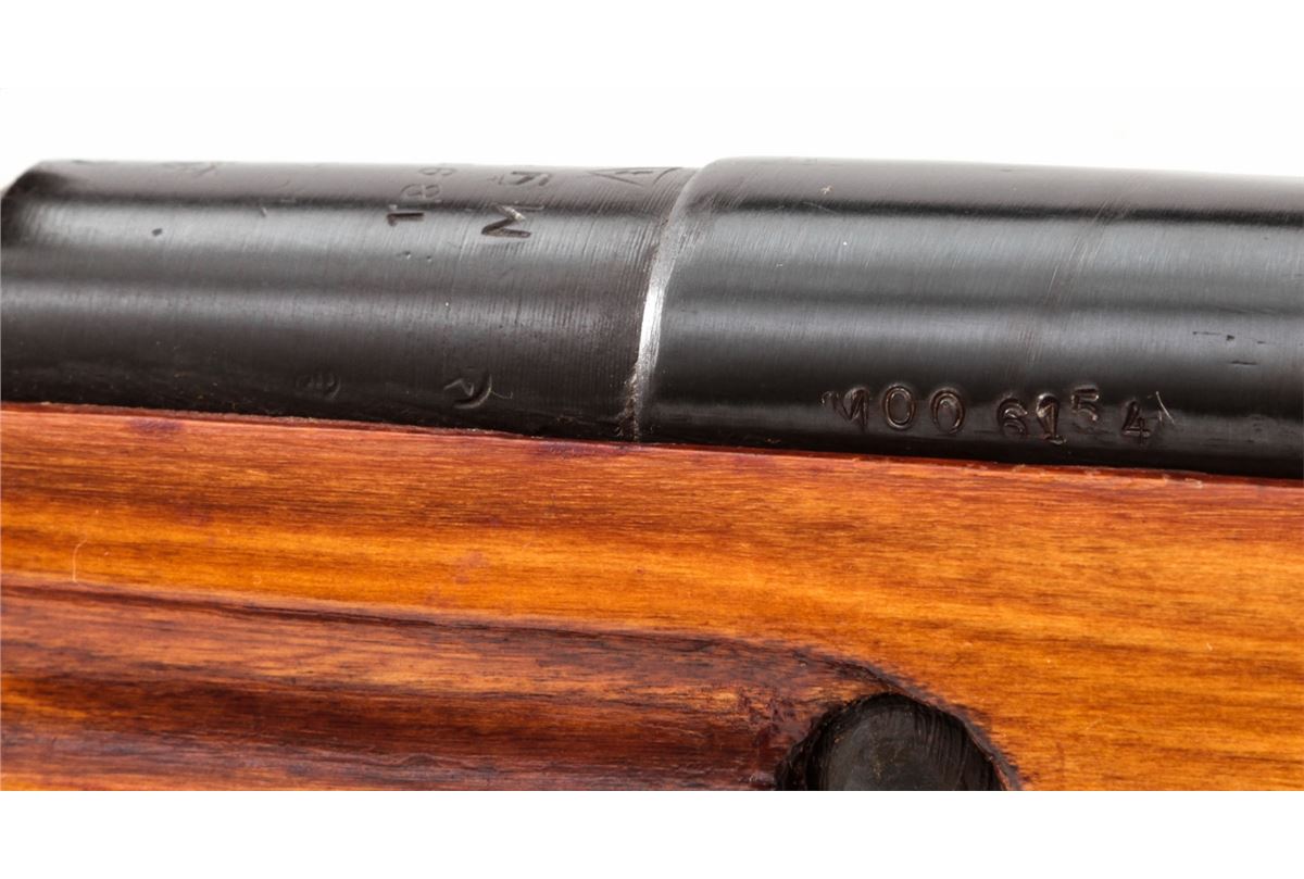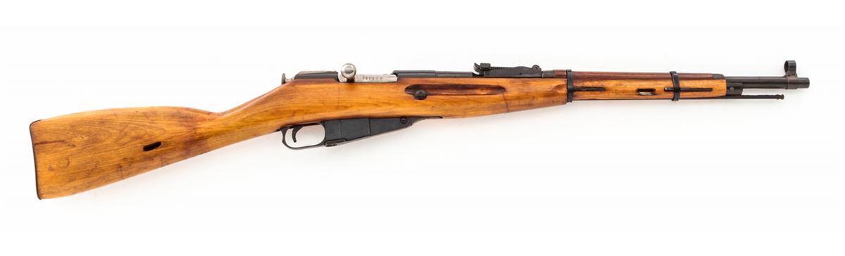 Mosin-Nagant M1938 Bolt Action Carbine, #M006154, 7.62x54R cal., 20.5'' barrel, blue finish, beech stock. Condition is fine as arsenal refinished. Lightly import marked at muzzle. Good stock and action, bore is very good. With manual. Est.: $125-$250. (C&R)