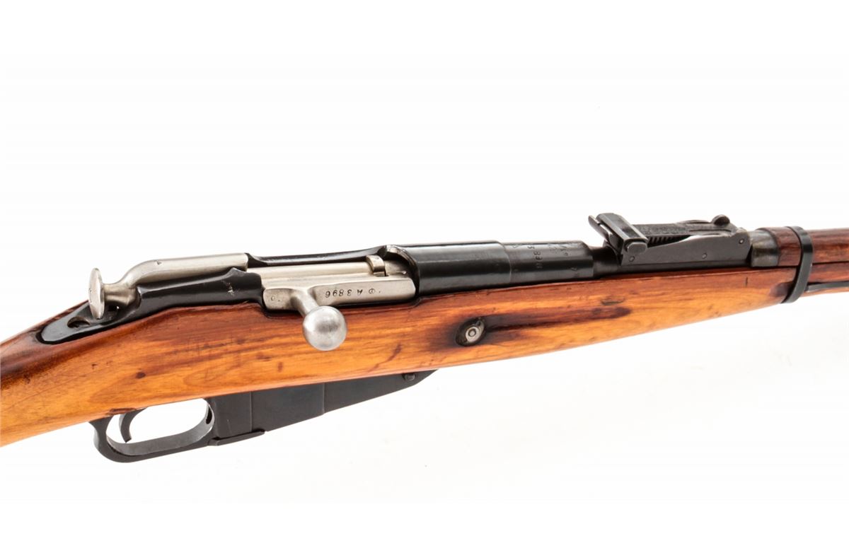 Mosin-Nagant M1938 Bolt Action Carbine, #FA3896, 7.62x54R cal., 20.5'' barrel, blue finish, beech stock. Condition is fine as arsenal refinished. Lightly import marked at muzzle. Good stock and action, bore is about good. Est.: $125-$250. (C&R)