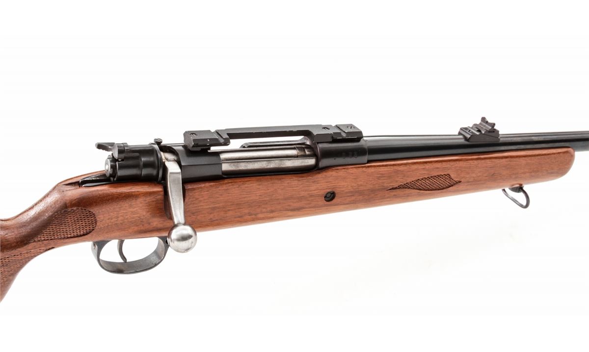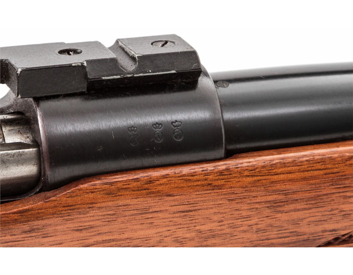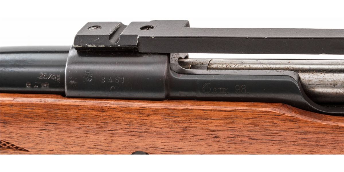 Sporterized Gew-98 Bolt Action Rifle, #3461a, .30-06 cal., 24'' barrel, blue finish, pressed checkered walnut stock. Condition is fine as modified, with refinished frame, 97% blue remaining, and stock with light marks to cheekpiece. Crisp action, good bore. Est.: $200-$400. (C&R)