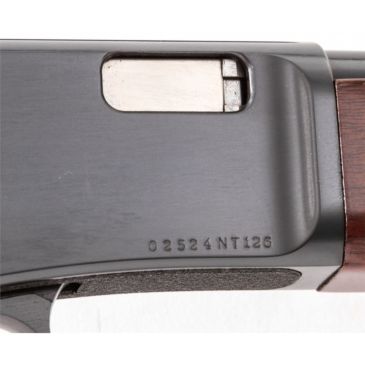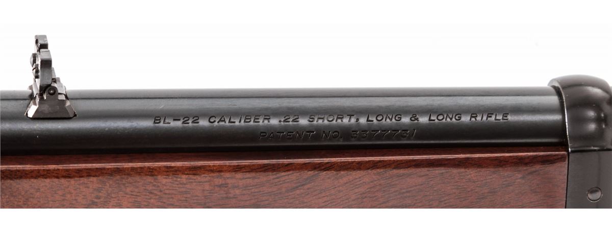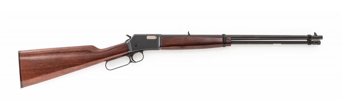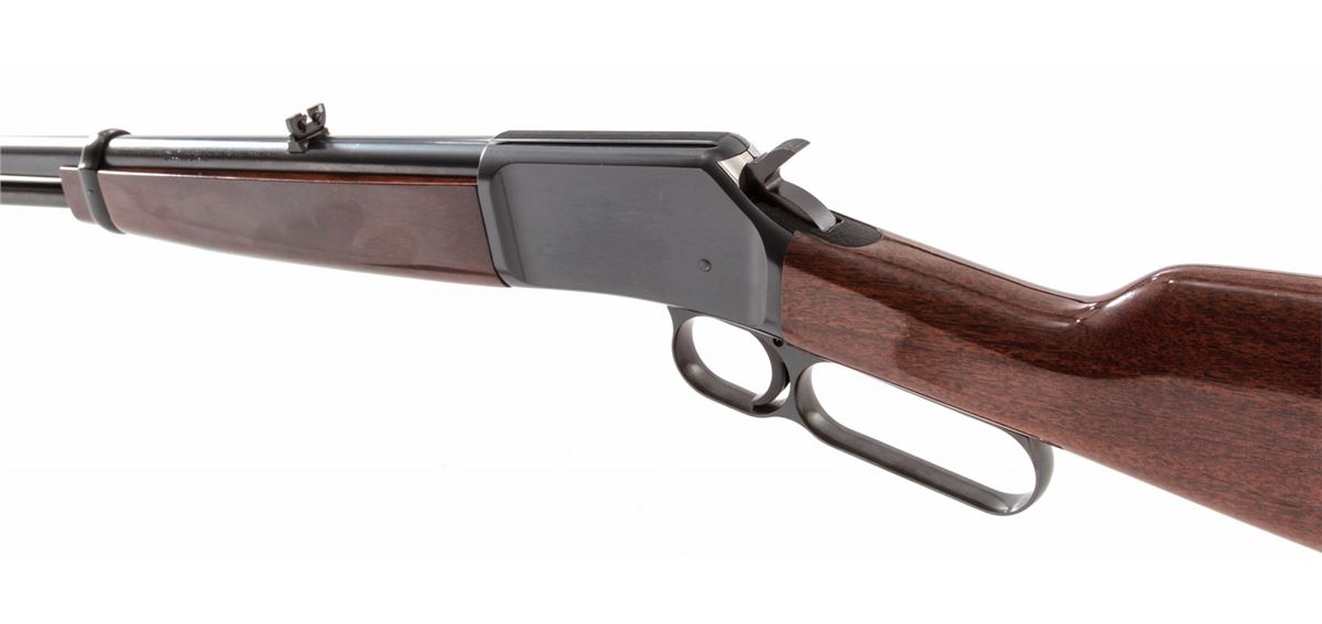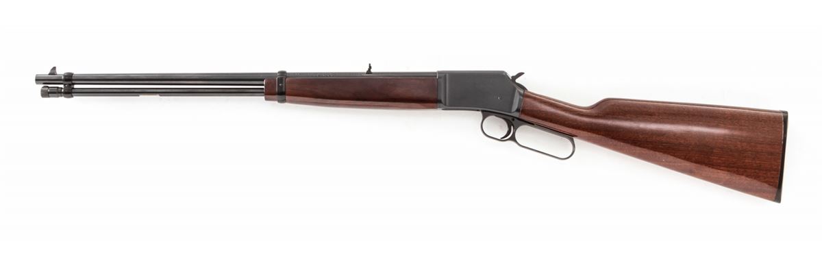 Browning BL-22 Lever Action Rifle, #02524NT126, .22 S,L or LR cal., 20'' barrel, blue finish, walnut stock and forend. Condition is excellent, appearing near new, with only light marks to receiver flat from handling. Very light impressions to stock as well. Crisp action, bright bore. Est.: $300-$500. (Modern)