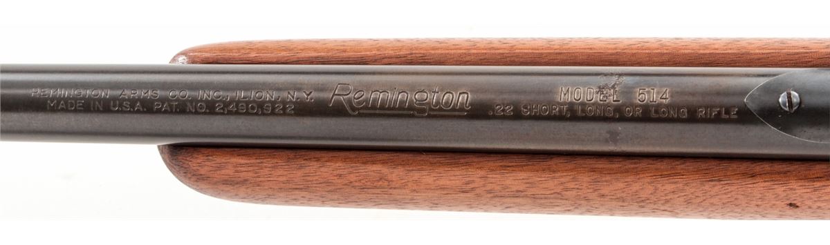 Remington Model 514 Single Shot Rifle, NVSN, .22 S-L-LR cal., 24.75'' barrel, blue finish, walnut stock. Condition is excellent with minor thinning to top of barrel. Stock shows only light marks from handling. Good action and bore. The perfect grandson gun. Est.: $75-$150. (C&R)
