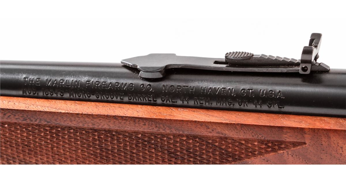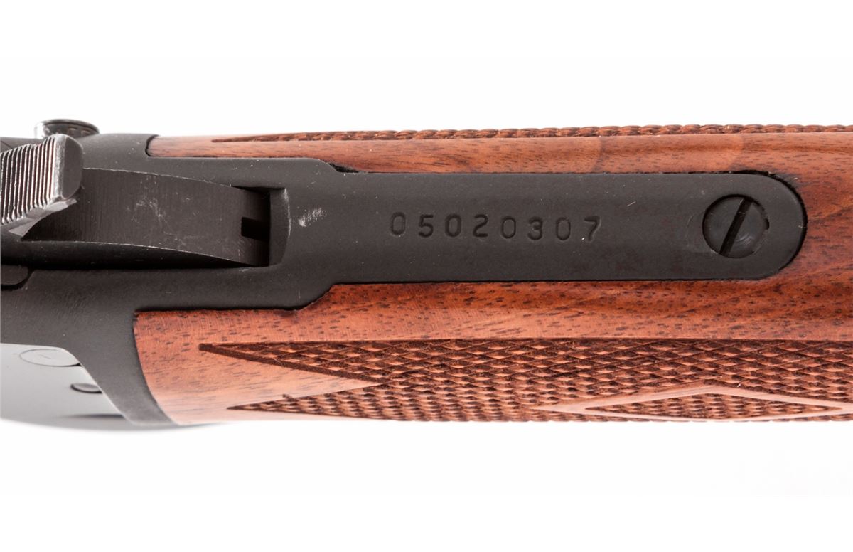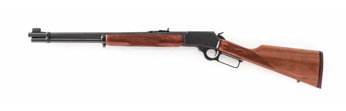 Marlin Model 1894S Lever Action Rifle, #05020307, .44 mag./Spec. cal., 20'' barrel, blue finish, checkered walnut stock. Condition is excellent. Top of frame shows evidence of once-mounted scope (now removed). Est.: $450-$600. (Modern)