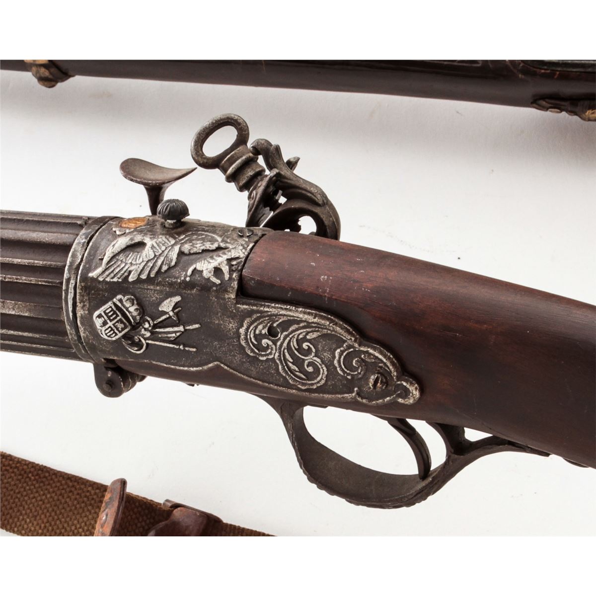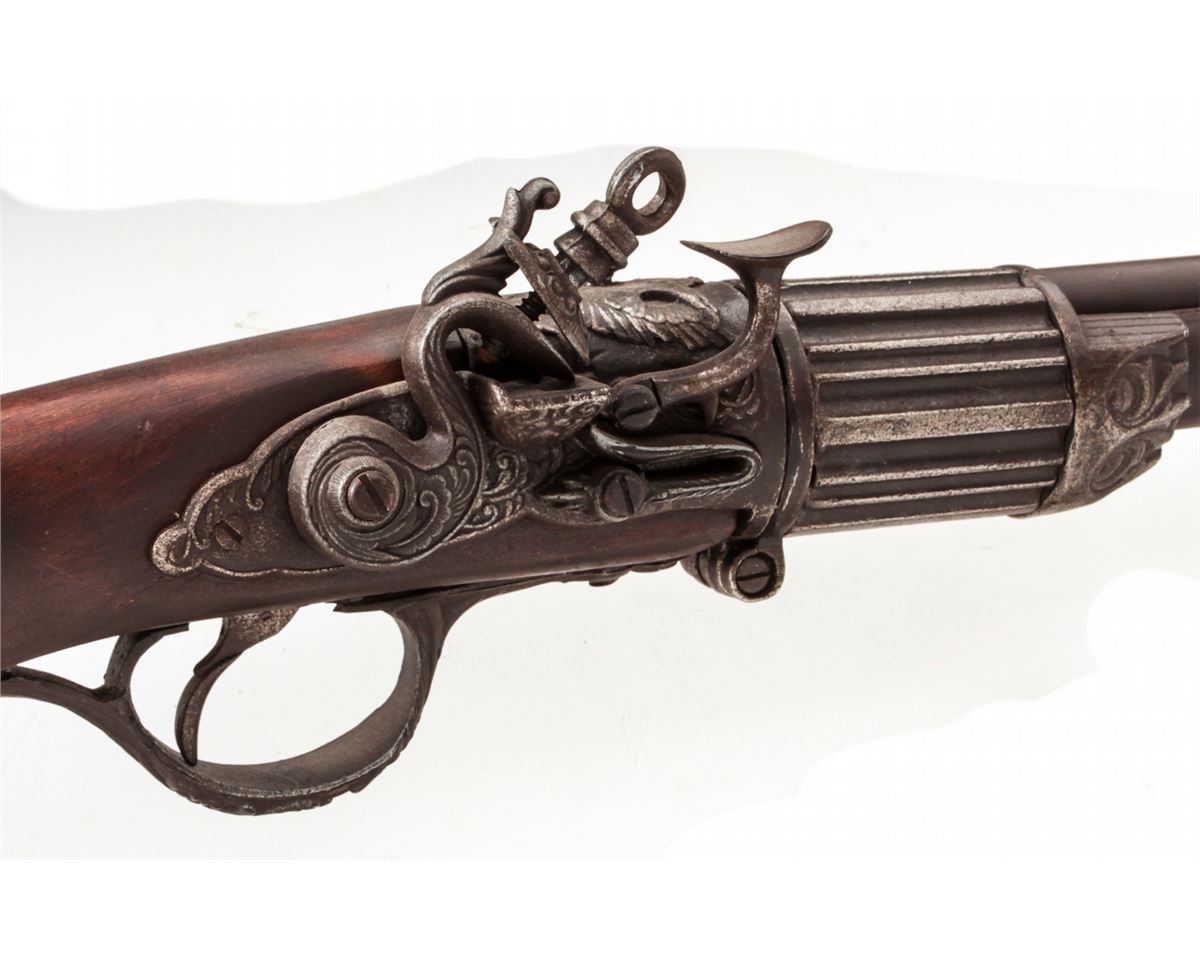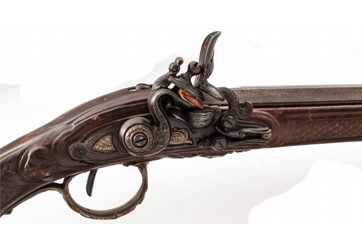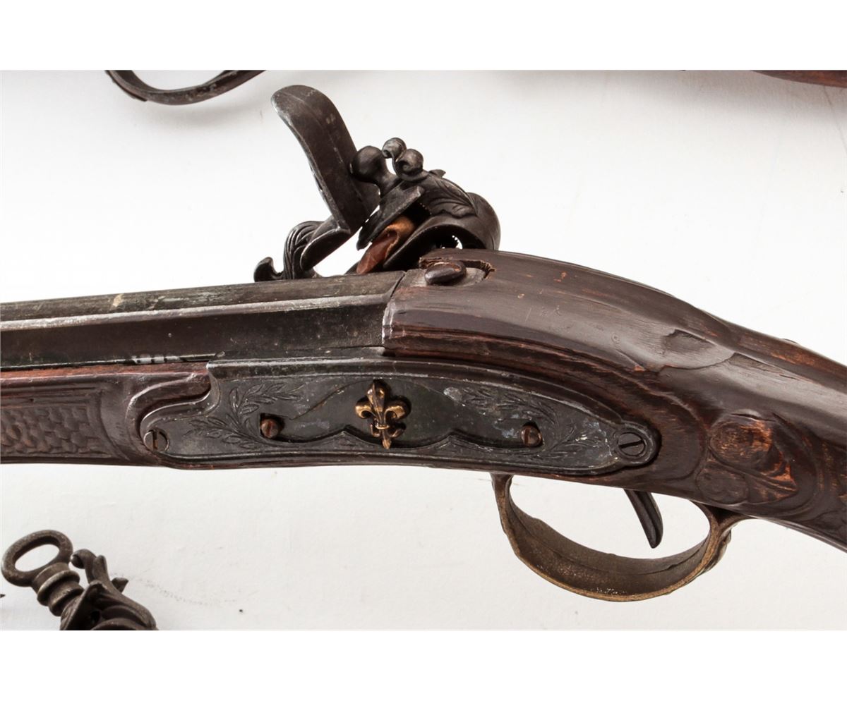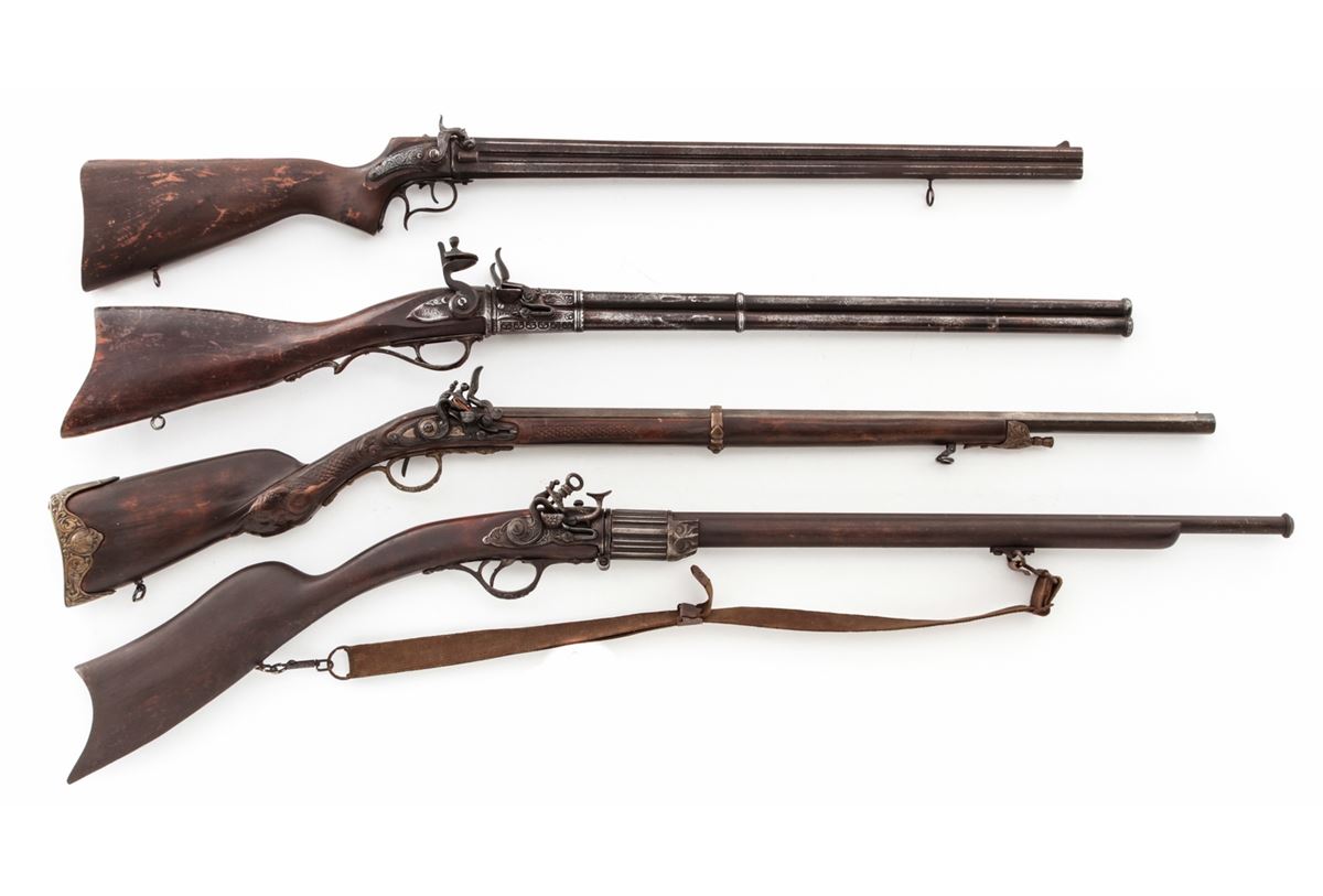 Lot of Four (4) Decorator Replica Flintlock and Percussion Rifles, possibly movie props. Condition to all is good, one with broken trigger. Est.: $100-$150/lot. (Non-guns)