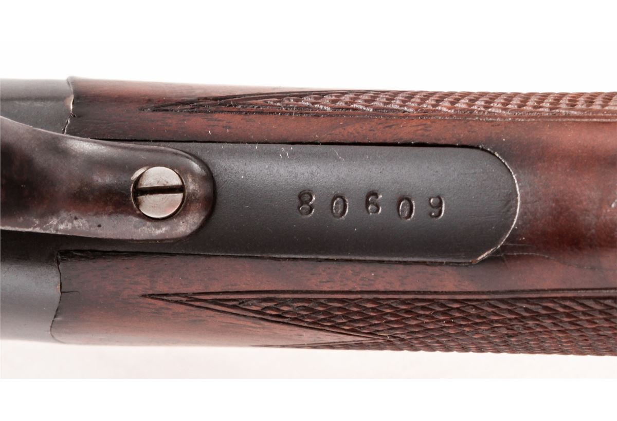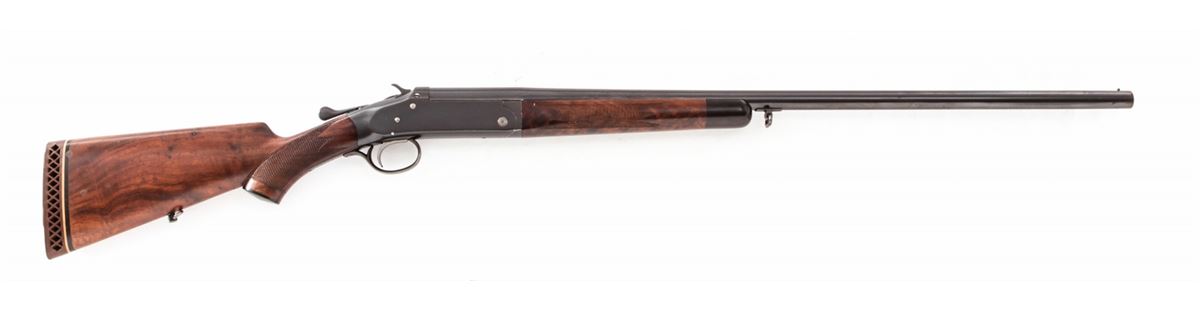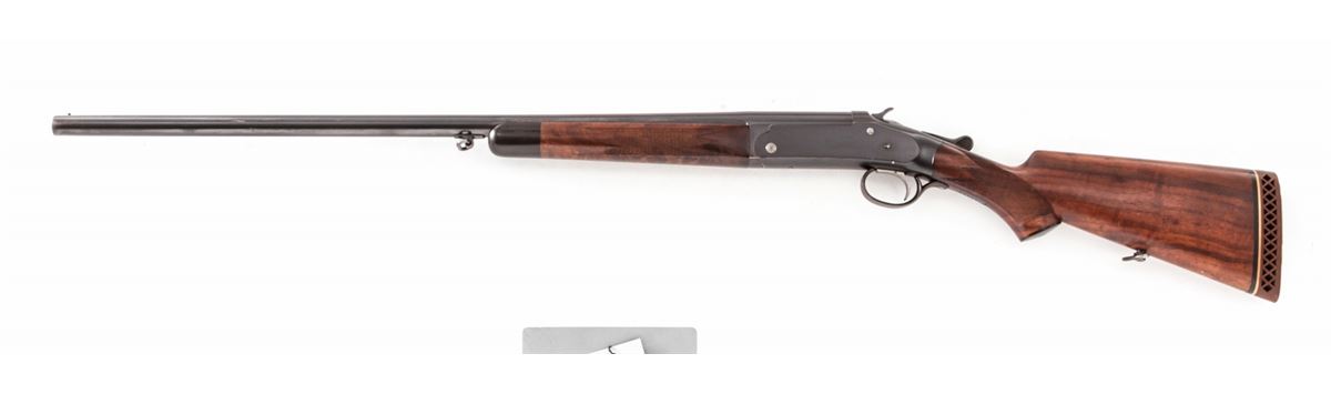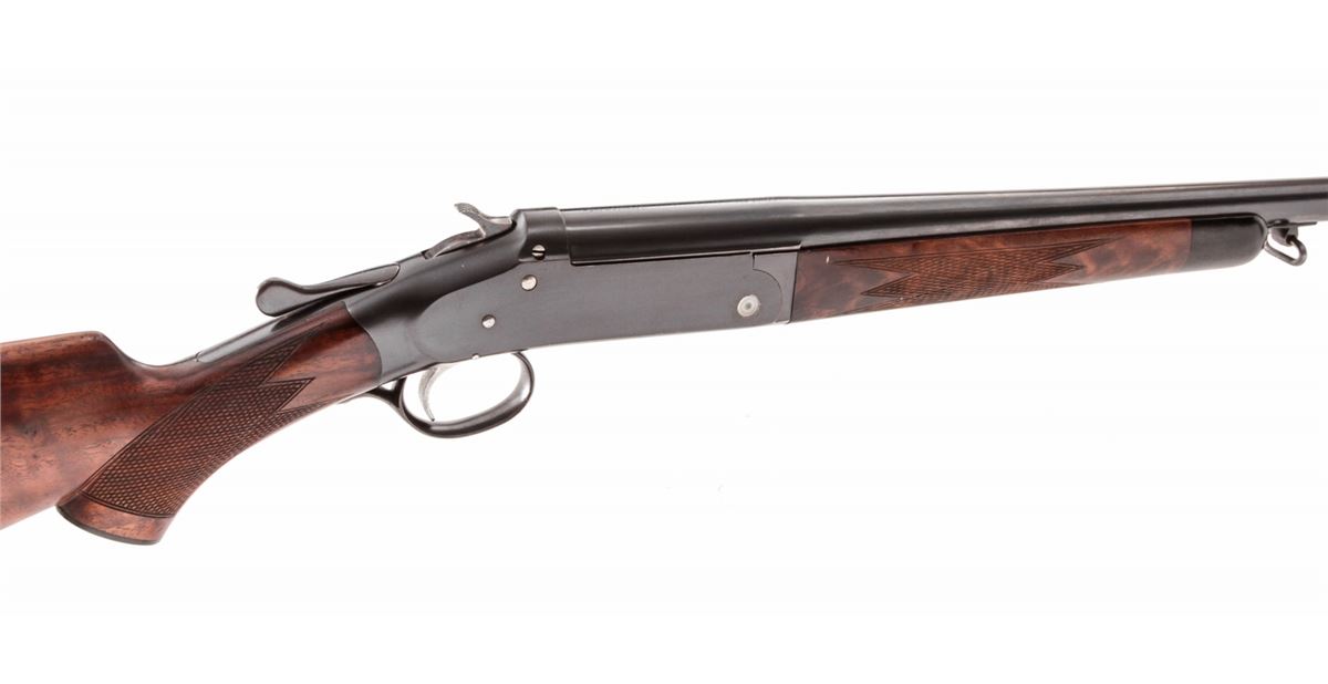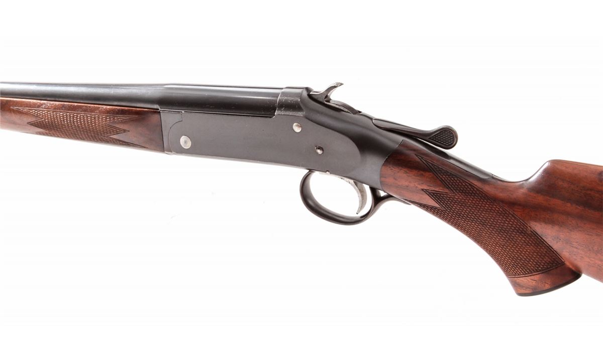 Iver Johnson Single Shot Shotgun, NVSN, 20 ga., 27'' barrel, blue finish, checkered pistol-grip walnut stock and forend. Condition is fine as restocked and refinished, with Belgian blue type finish. Bird's beak checkered walnut stock and forend show light wear. Good action, bright bore. Est.: $150-$300. (C&R)