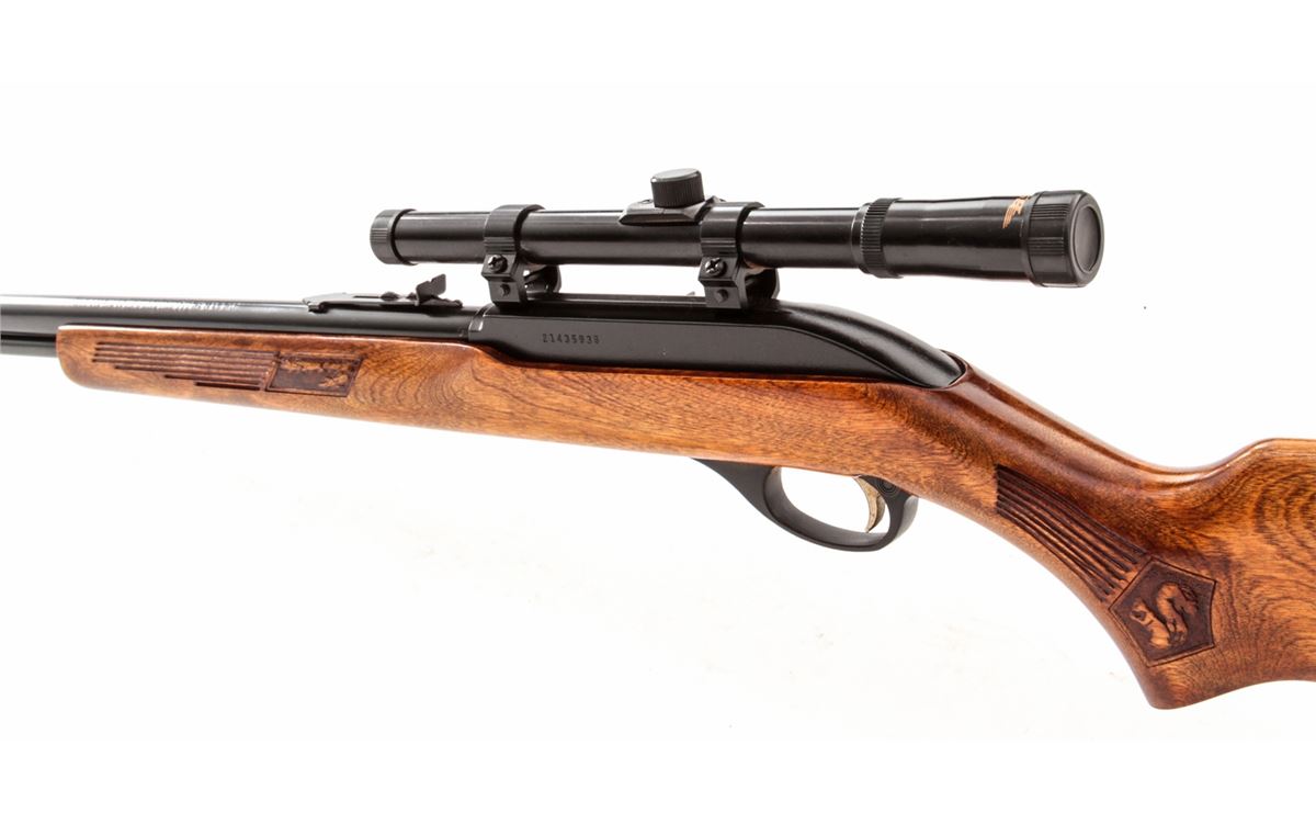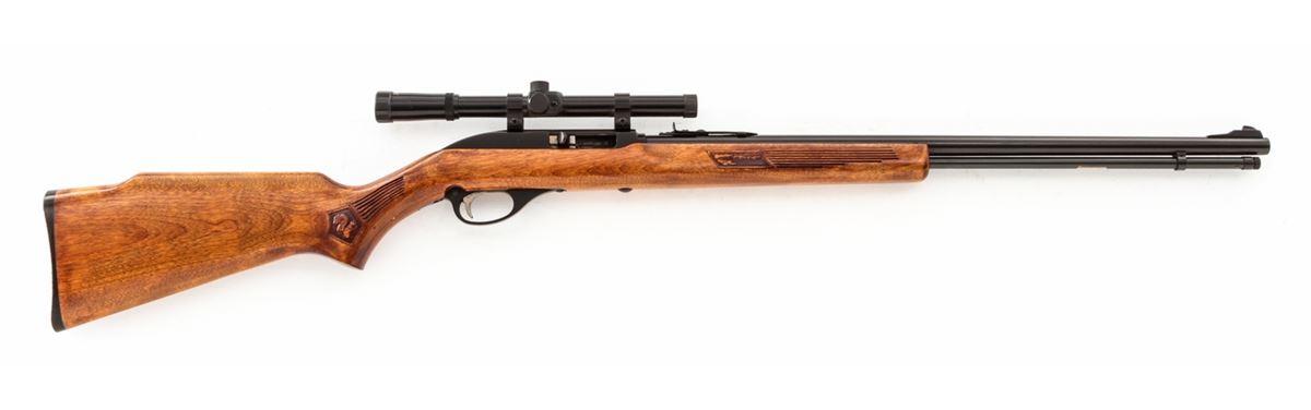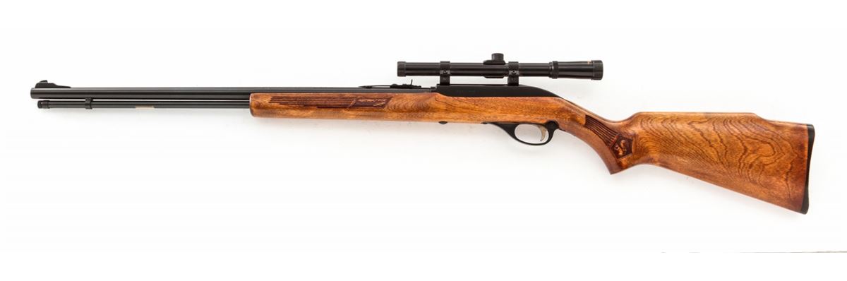 Marlin Glenfield Model 60 Semi-Automatic Rifle, #21435936, .22 LR cal., 22'' barrel, black finish, pressed birch stock, with BSA 4-power scope. Condition is excellent showing little use. Good action and bore, scope optics are clear. Est.: $75-$150. (C&R)