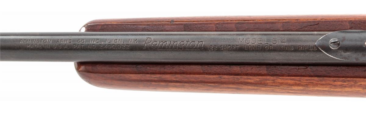 Remington Model 514 Bolt Action Rifle, NVSN, .22 S-L-LR cal., 24'' barrel, blue finish, walnut stock. Condition is fine retaining approx. 90% original blue. Stock with additional coat of varnish. Good action and bore. Est.: $75-$150. (C&R)