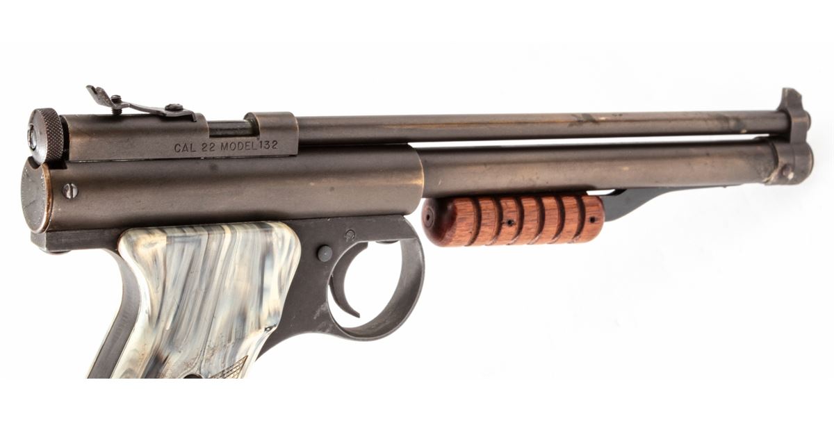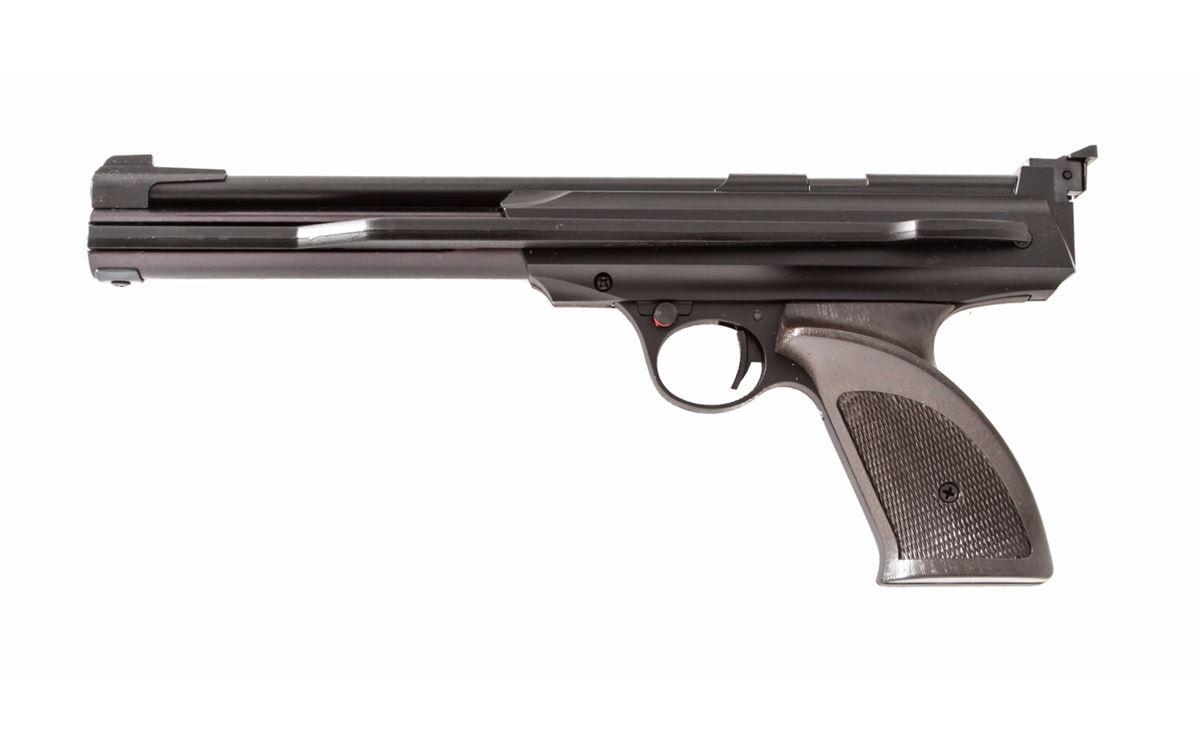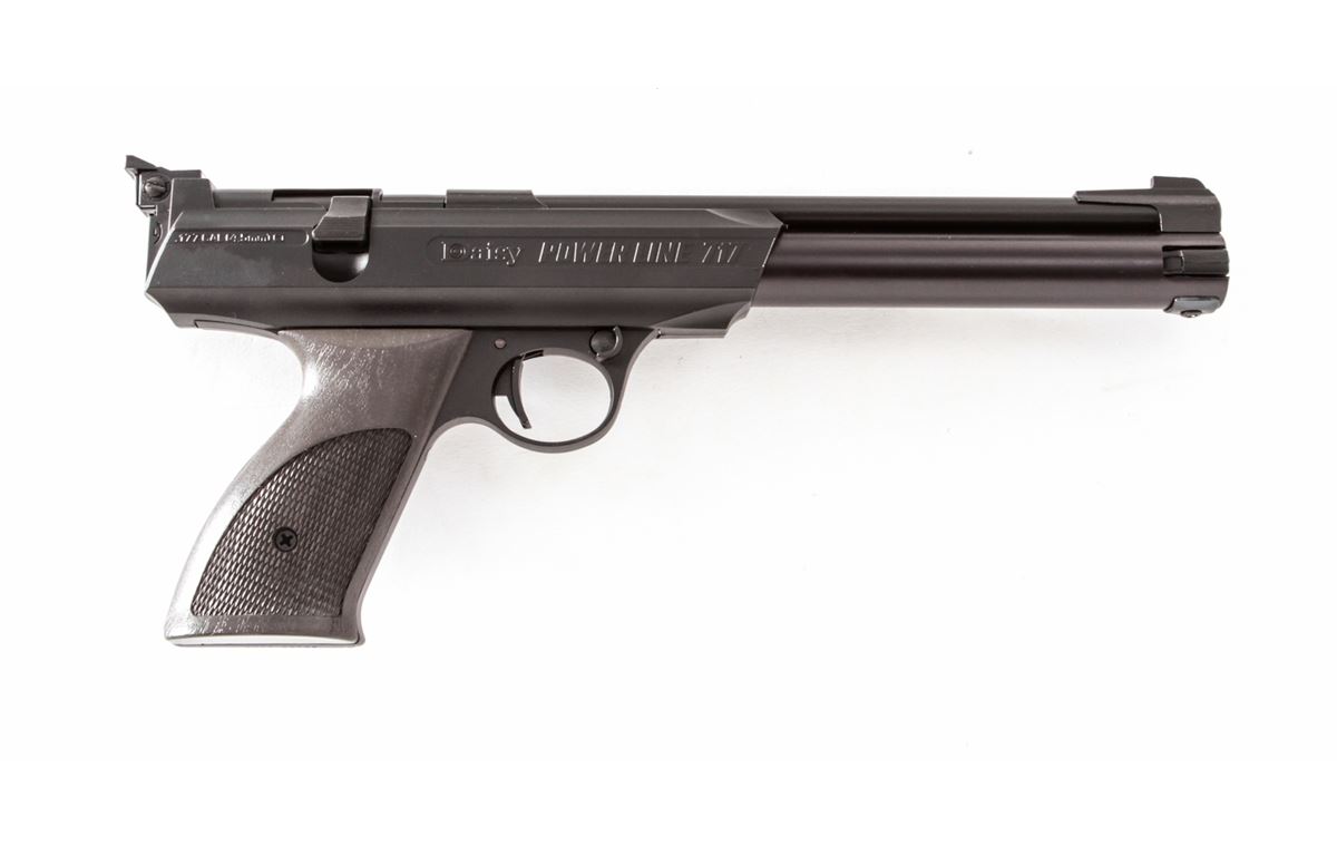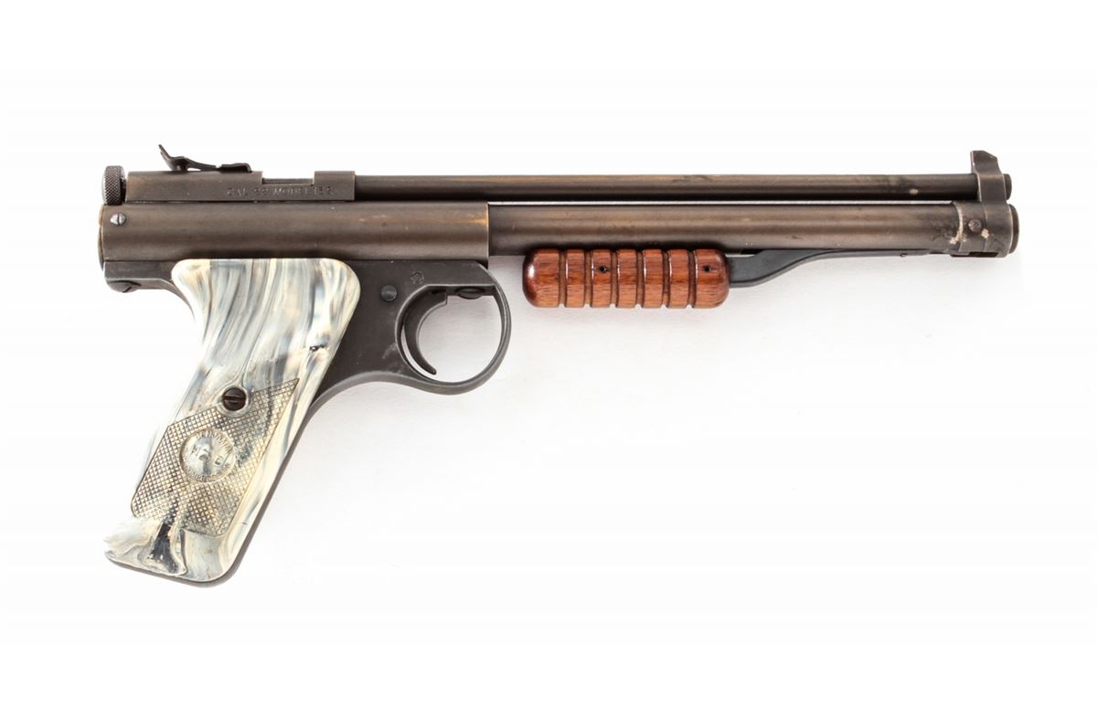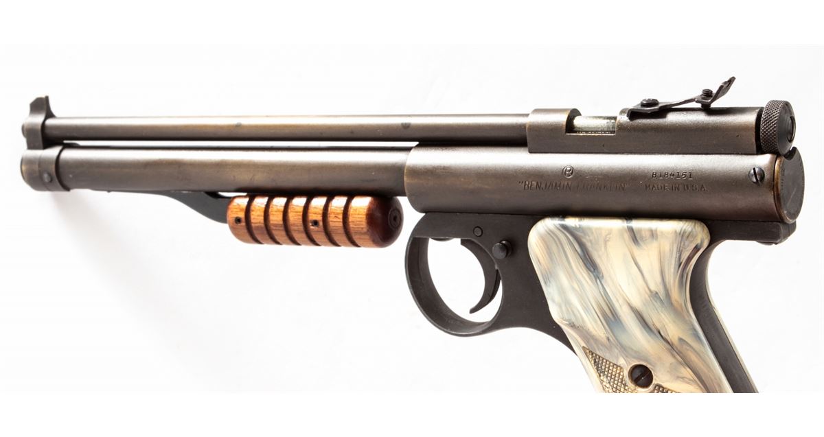 Misc. Lot consisting of two (2) pellet guns, one a Benjamin Franklin Model 132 in .22 cal., and one a modern Powerline single shot .177 cal. air pistol by Daisy, as new in original box; special AR-15 stock that replaces pistol grip and marked ''U-15''; two (2) boxes of Win. .250 Sav. ammo with 87GR pointed softpoint bullets; and two (2) boxes of .375 Win. ammo with 200 grain power-point (s.p.). Est.: $100-$200/lot.