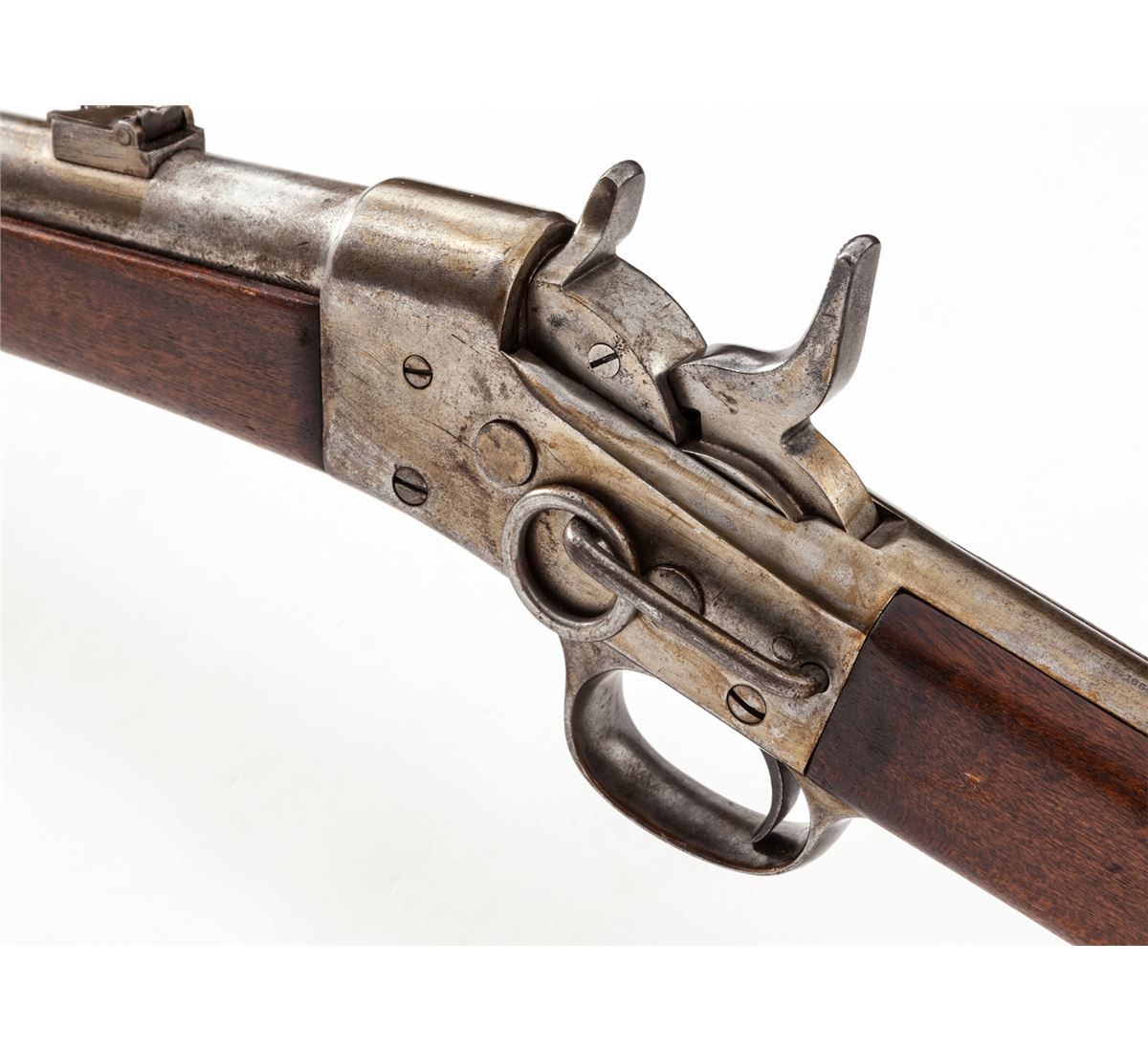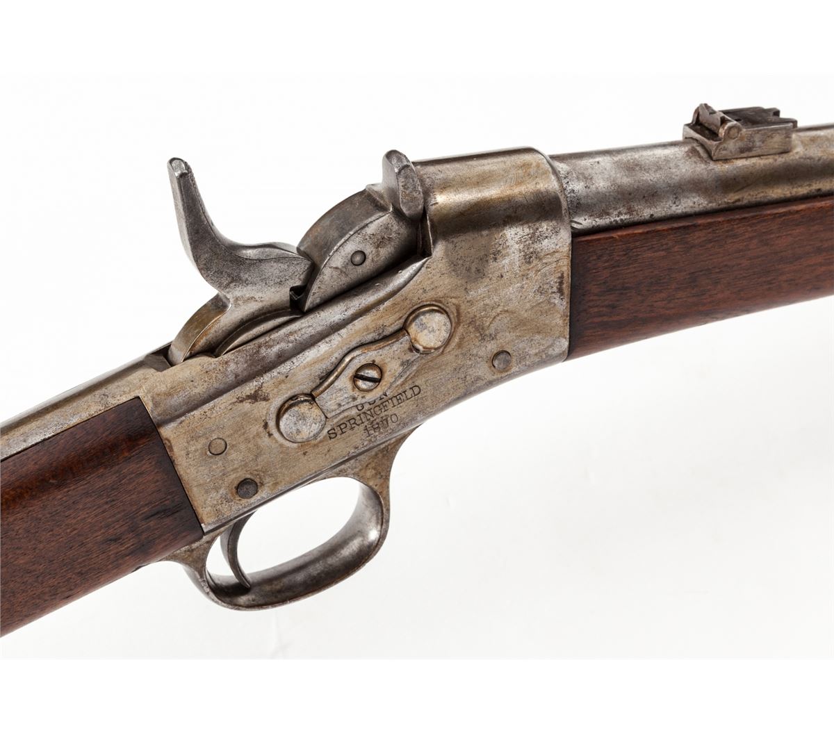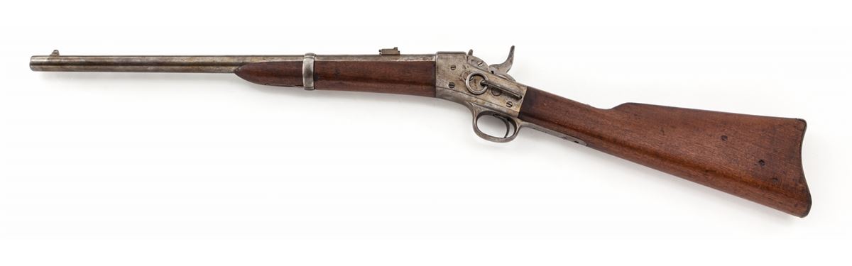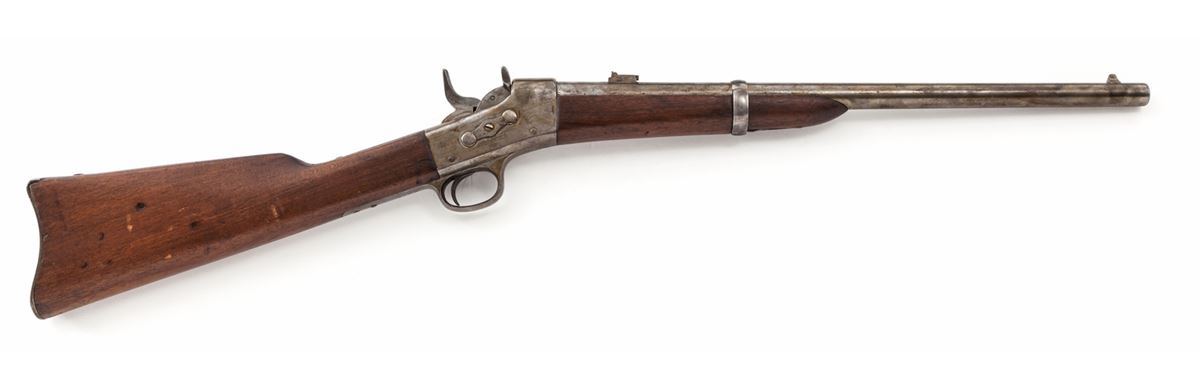 Remington U.S. Navy Model 1867 Rolling Block Carbine, NVSN, .43 Span. cal., 20.5'' barrel, bright finish, walnut stock and forend, left side of receiver marked ''USN Springfield 1870''; rear portion of triggerguard marked ''100''. Re-mfg'd by Whitney into .43 Spanish using surplus USN frame. Condition is very good with metal surfaces showing mostly white with smoothing to sharp edges. Stock with light dings and scuffs. Good action and bore. Est.: $800-$1,200. (Antique)
