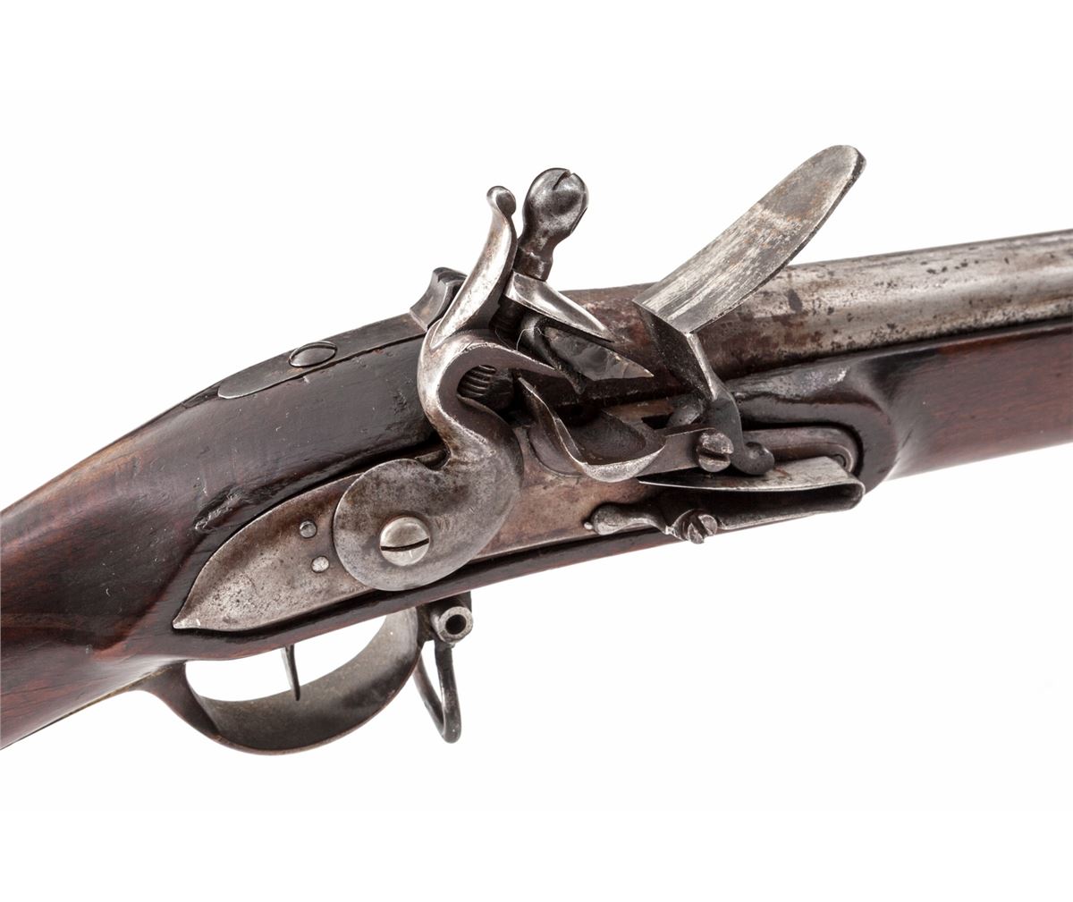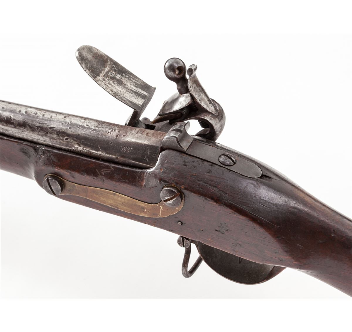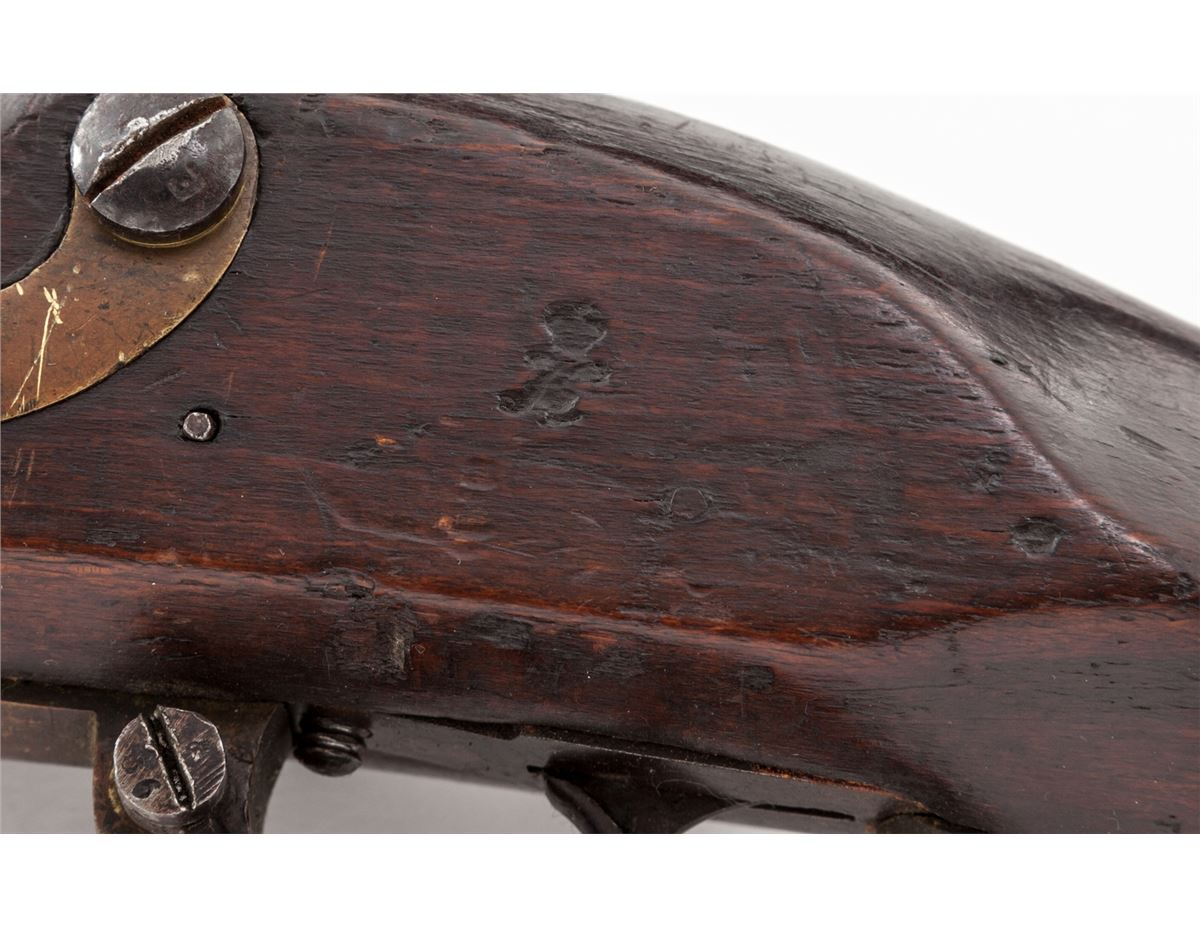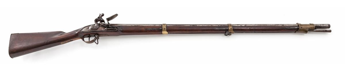 Continental Flintlock Musket, dated 1830, .75 cal., 41'' barrel, ''FW'' proofmark at breech, ''(crown)/K'' to left side of stock above trigger, brass hardware, unmarked lockplate, with full-length walnut stock. Condition is near fine with toning and carbon spotting to metal surfaces. Stock is at least very good with light scuffs and nicks but no losses or cracks. Functioning action, good bore. Ramrod is present. Est.: $1,200-$1,800. (Antique)