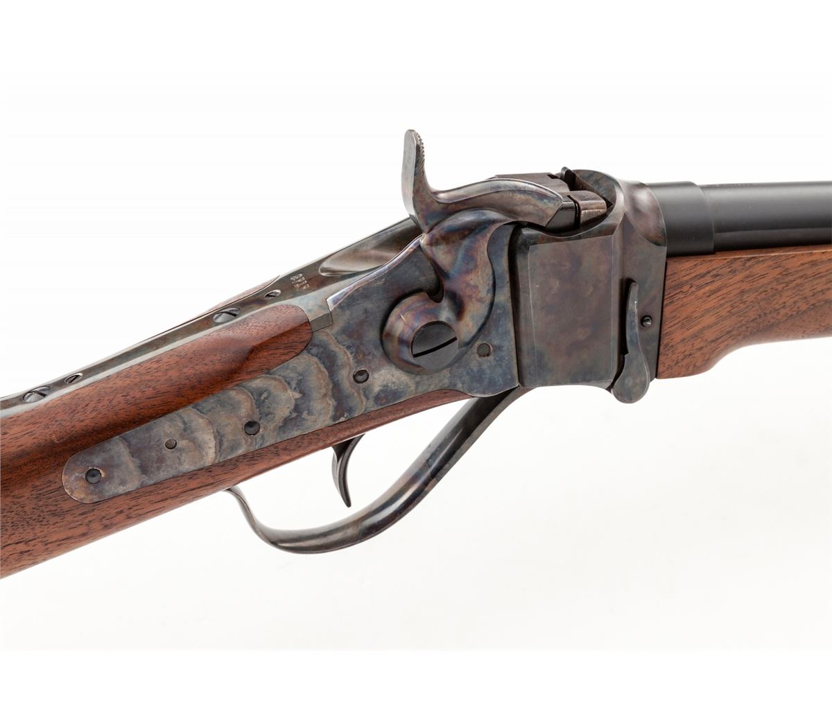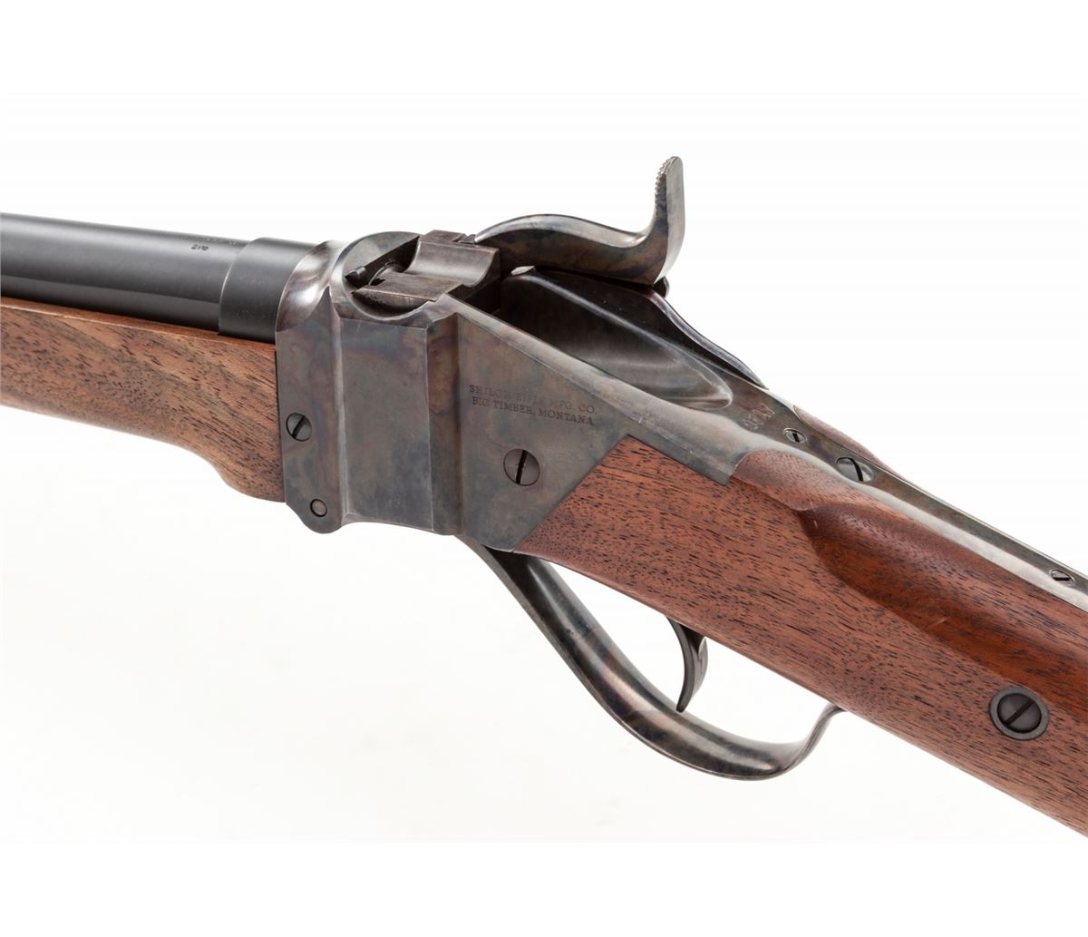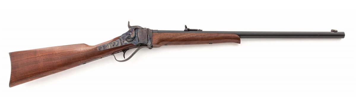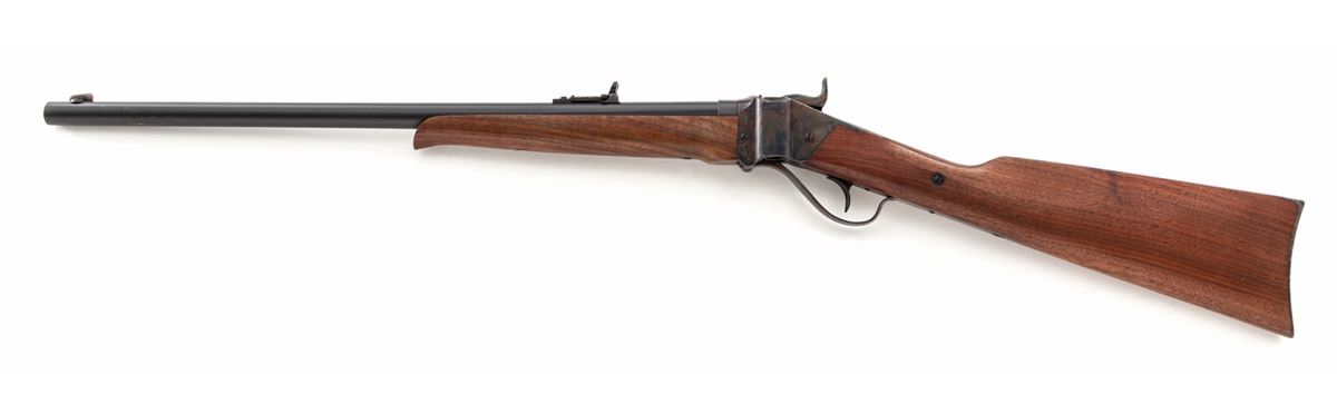 Shiloh Sharps Model 1874 Single Shot Rifle, #9717, .45-70 cal. (.45-2-1/10), 24'' matte blue barrel, case hardened frame, walnut stock and handguard, with combination buckhorn rear rifle sight and nickel silver front blade. Condition is excellent, appearing as new, showing only the lightest marks from handling to stock. Est.: $1,200-$1,800. (Modern)