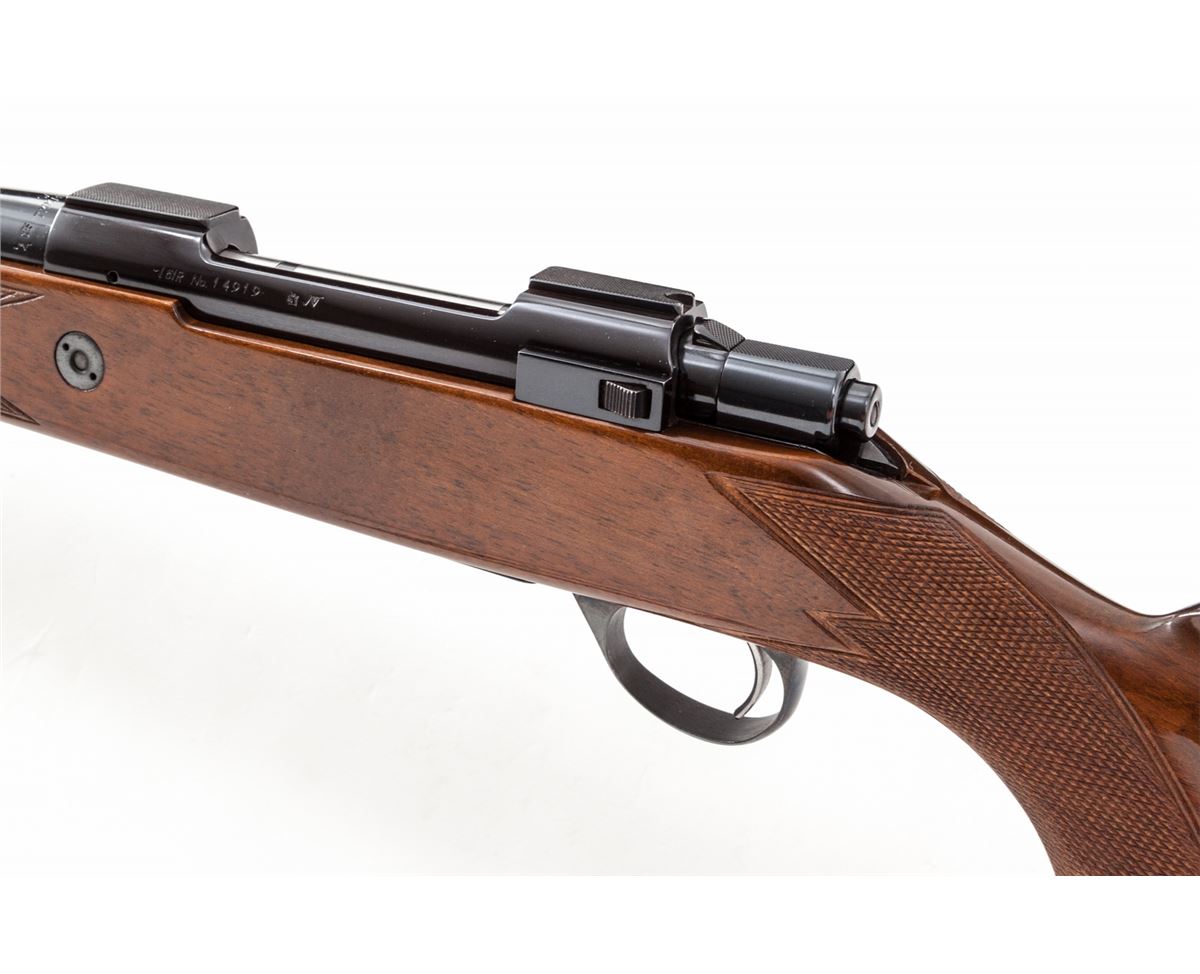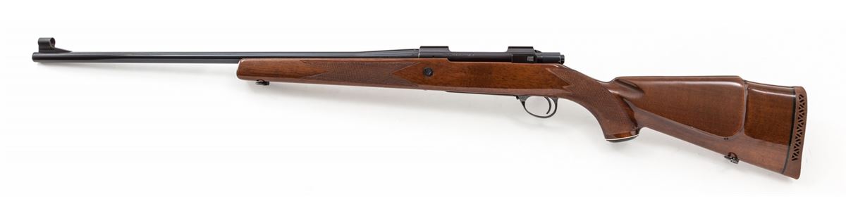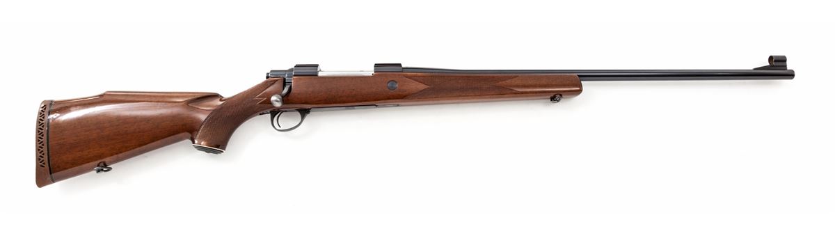 Sako Finnbear Bolt Action Rifle, #14919, 7mm Rem. mag. cal., 24-1/2'' barrel marked ''Bofors Steel'', blue finish, pistol-grip checkered walnut stock, with original Sako rubber butt pad. Condition is excellent. This pre-Garcia rifle retains approx. 98%+ original blue, with the only real losses to the bolt handle. Stock with only the lightest marks from handling. Scope rings not present. Action is good, bore is bright. Est.: $750-$1,000. (Modern)