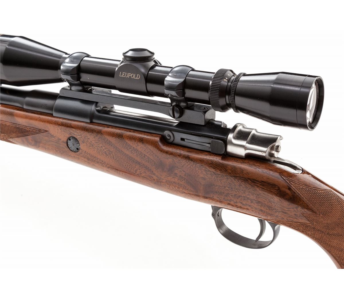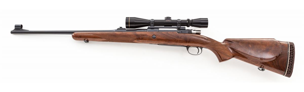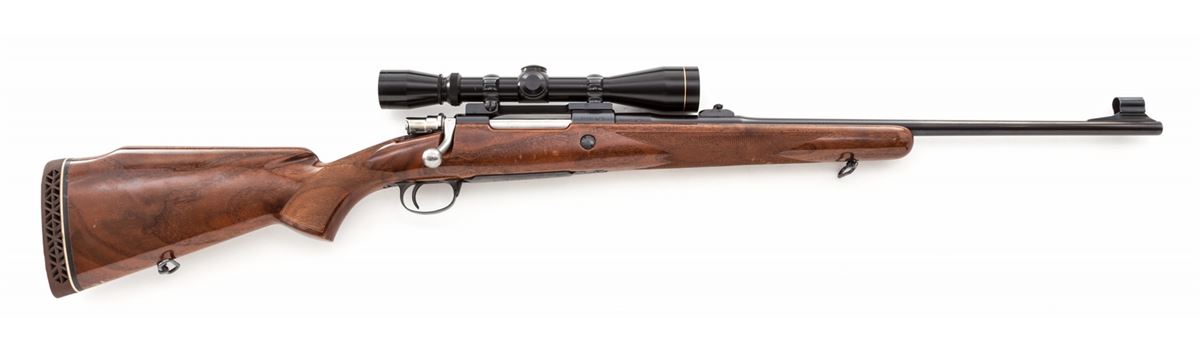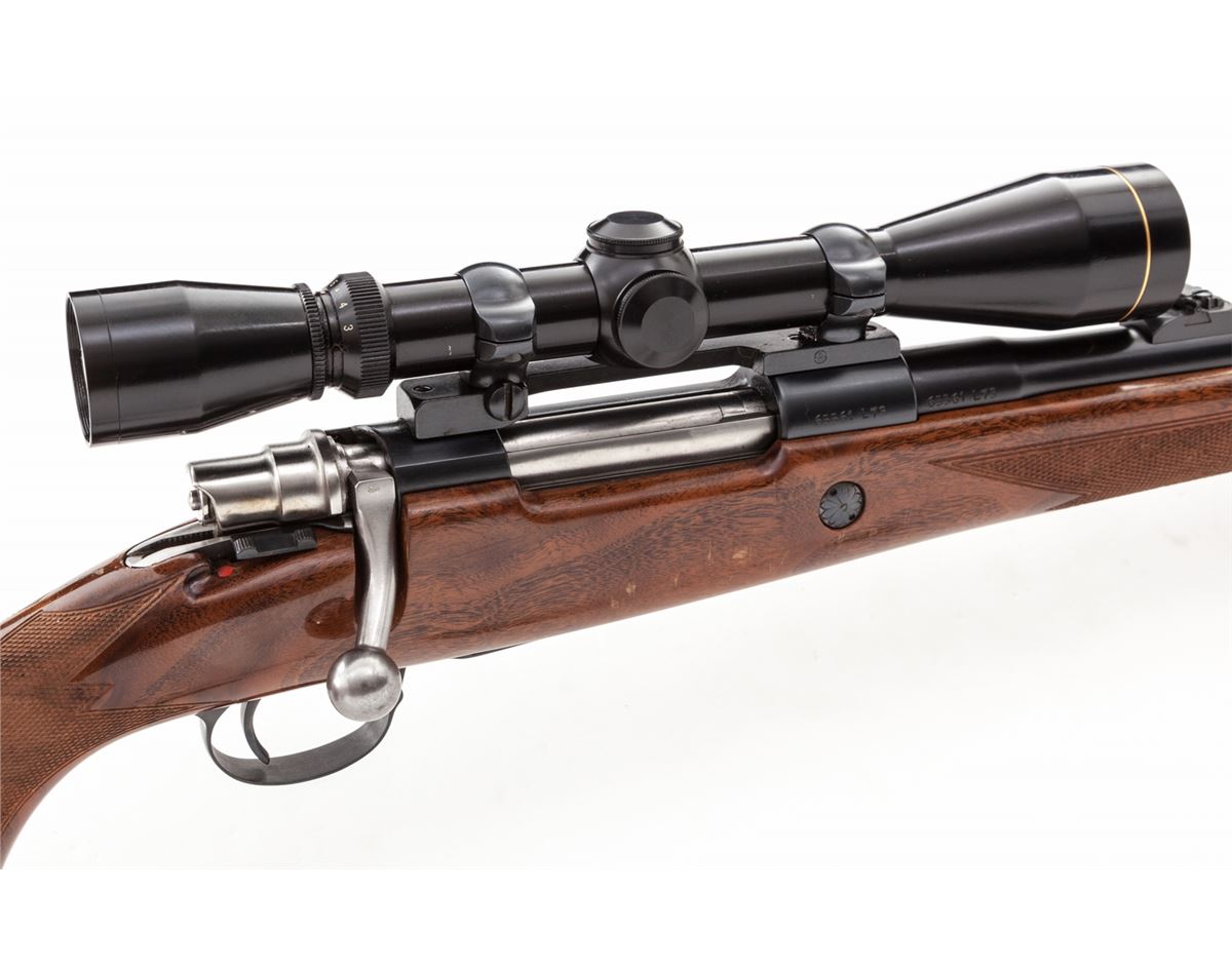 Browning FN Sporter Bolt Action Rifle, #65561L73, .270 cal., 22'' barrel, blue finish, bright bolt and follower, polished receiver rails, factory checkered cheekpiece walnut stock, with Whiteline brown rubber butt pad. Topped with a Leupold Vari-X II 3x9 scope. Factory iron sights are retained. Condition is near excellent. Metal surfaces retain approx. 98% blue. Right side of stock above floorplate with nicks and scuffs from field use. Action is good, bore is bright, scope optics are clear. Est.: $500-$750. (Modern)