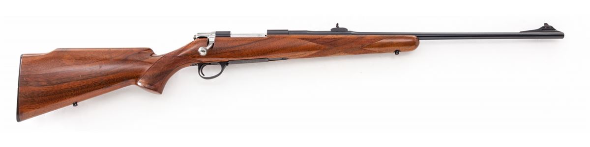 Browning FN High-Power Bolt Action Rifle, #7471Z7, .308 cal., 22'' barrel, blue finish, checkered cheekpiece walnut stock, Browning black plastic buttplate, with lightly engraved steel triggerguard and magazine floorplate. Made in Finland on Sako barreled action and stocked by FN. Condition is excellent showing little use and just light marks to stock from handling. No evidence of salt wood. Action is good, bore is bright. Est.: $800-$1,200. (Modern)