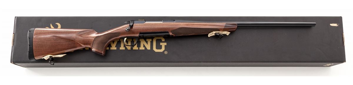 Browning X-Bolt Medallion Bolt Action Rifle, #17652ZX354, .308 cal., 22'' barrel, blue finish, walnut stock. Condition is excellent, appearing as new and unfired, in original box. Est.: $750-$1,000. (Modern)