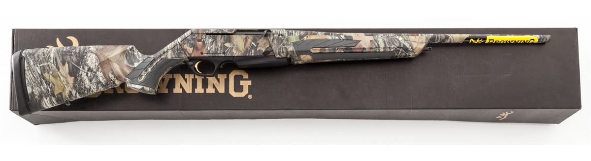 Browning BAR Short Trac Camo Semi-Automatic Rifle, #311MN01645, .243 Win. cal., 22'' barrel, Mossy Oak Break Up camouflage finish, with hard rubber butt pad. In original box with gun lock, matching end label, and owner's manual. Original Browning sticker remains attached to the barrel. Condition is excellent, remaining new and unfired. Retails @ $1,130.95. Est.: $800-$1,000. (Modern) (Field Time)