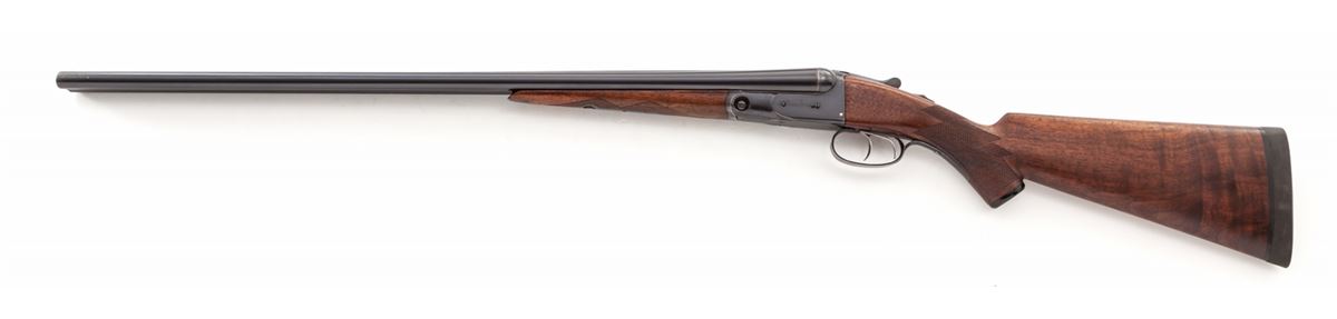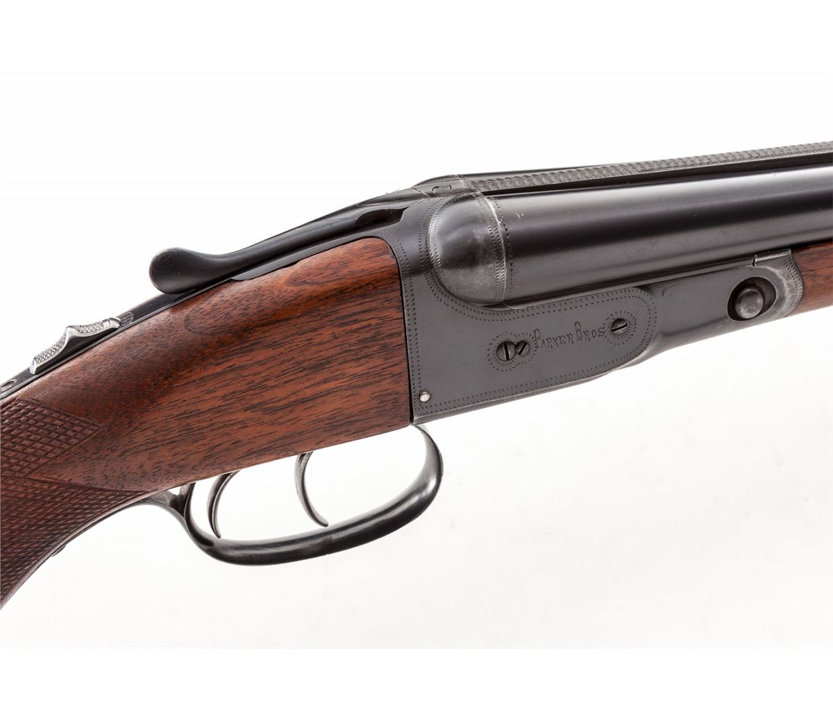 Parker Field Grade Side-by-Side Shotgun, #158336, 20 ga., 28'' barrels choked Full/IC, 2-1/2'' chs., blue finish, checkered walnut stock. Dual triggers, auto safety, with extractors only. Mfg'd 1912. Condition is excellent as refinished retaining approx. 97% lightly thinning blue with most of the losses in the balance point. Original splinter forend shows moderate flattening and light scratches. Original buttstock has been replaced with all work having been professionally accomplished. Black Pachmayr Decelerator butt pad has been added; original buttstock is included, which has moderate flattening, light sanding, and some repairs. Action is crisp, bores are bright. Length of pull: 13-3/4'' to back of pad; 12-3/4'' to end of wood. Est.: $1,800-$2,400. (C&R)