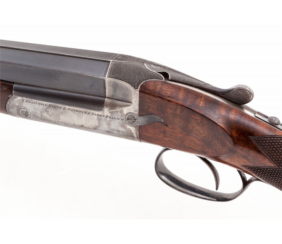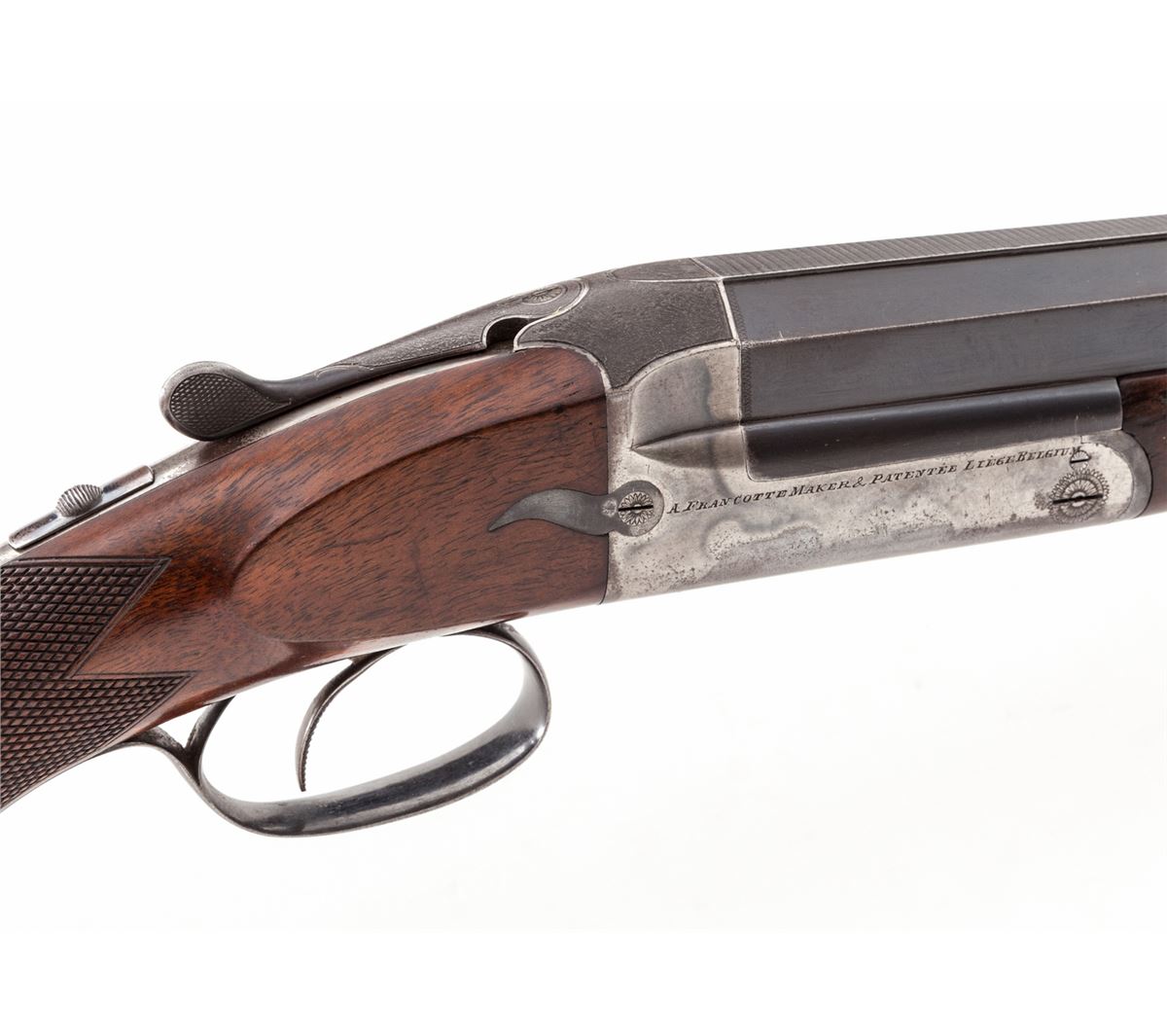 Francotte Model 11 Single Barrel Trap Shotgun, #27803, 12 ga., 2-3/4'' chs., 30'' part-round barrel choked Mod., case hardened frame, pistol-grip checkered walnut stock, with later added black Pachmayr rubber butt pad. Imported by VonLengerke & Detmold, U.S. Agents, New York. It is of note that Model 11s were extractors only, and Model 13s feature ejectors. This shotgun is extractors only. Condition is excellent. Barrel assembly retains approx. 94% lightly thinning blue; case hardened frame with 40% colors. Mild flattening to checks and light scuffs to stock from handling. Action is crisp, bore is bright with some residue that should clean near chamber area. Est.: $1,800-$2,400. (C&R)