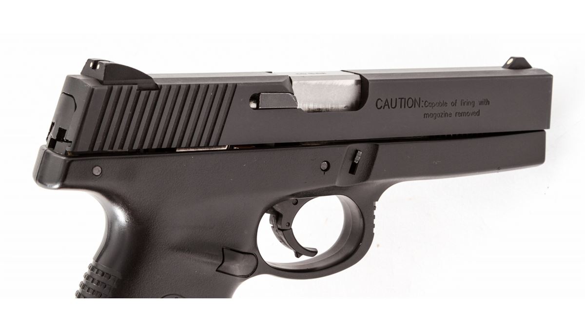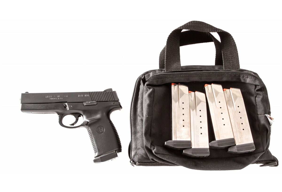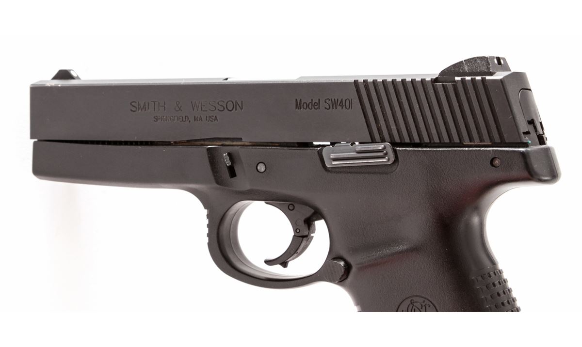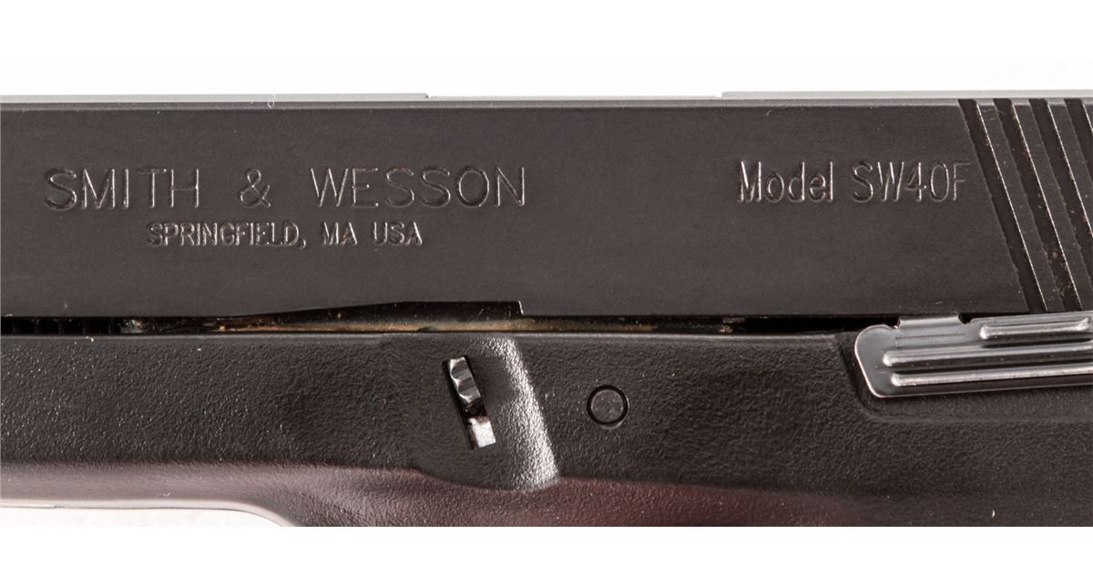 Smith & Wesson Model SW40F Semi-Automatic Pistol, #PAB6053, .40 S&W cal., 4-1/2'' barrel, matte finish, with five (5) 14-round magazines. Condition is excellent showing light range use. Est.: $300-$450. (Modern/PPT) (High-cap mags not available to Calif. residents.)