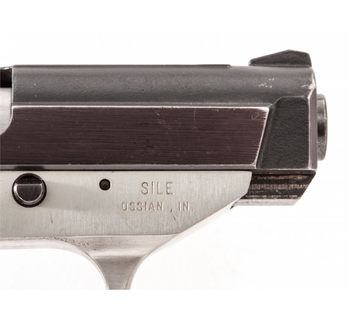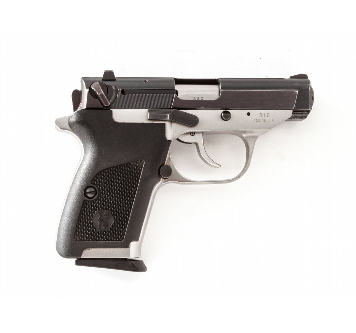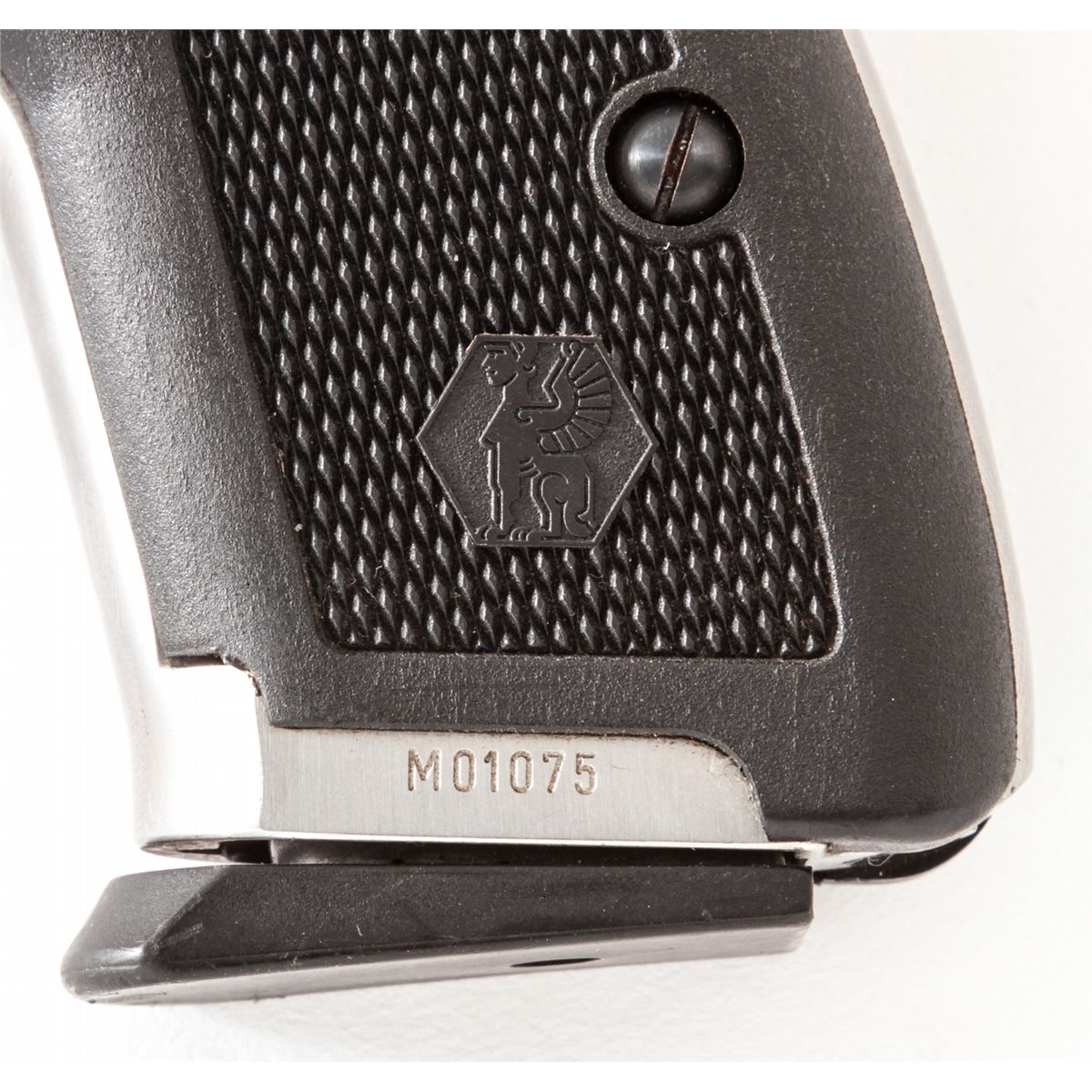 Swiss Sphinx Model AT .380-M Semi-Automatic Pistol, #MO1075, .380 cal., 3.25'' barrel, two-tone finish, factory checkered plastic grips, with one 10-round magazine. Condition is near new showing light handling marks with wear to forward edges of slide. Est.: $400-$600. (Modern) (Not available to Calif. residents.)