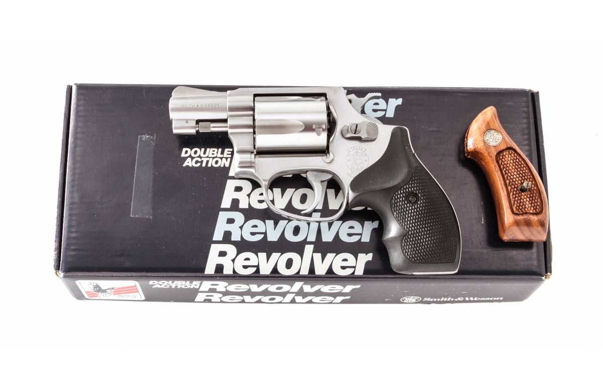 Smith & Wesson Model 60-7 Double Action Revolver, #BNF1276, .38 Spec. cal., 2'' barrel, stainless steel, with original grips and Pachmayr rubber grips, in original box. Condition is excellent, appearing as new. Est.: $300-$450. (Modern/PPT)