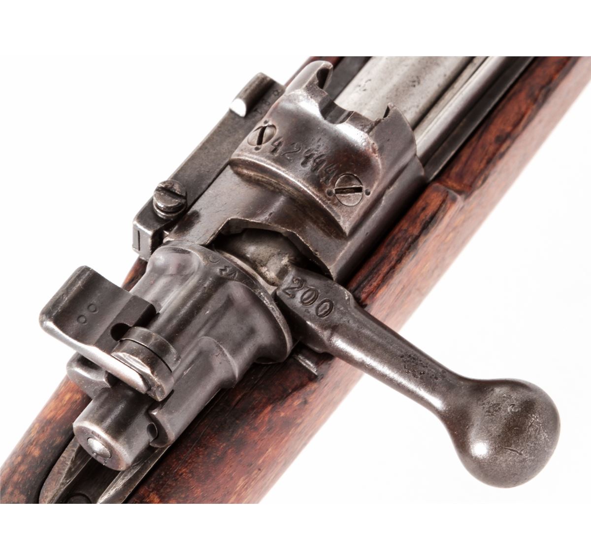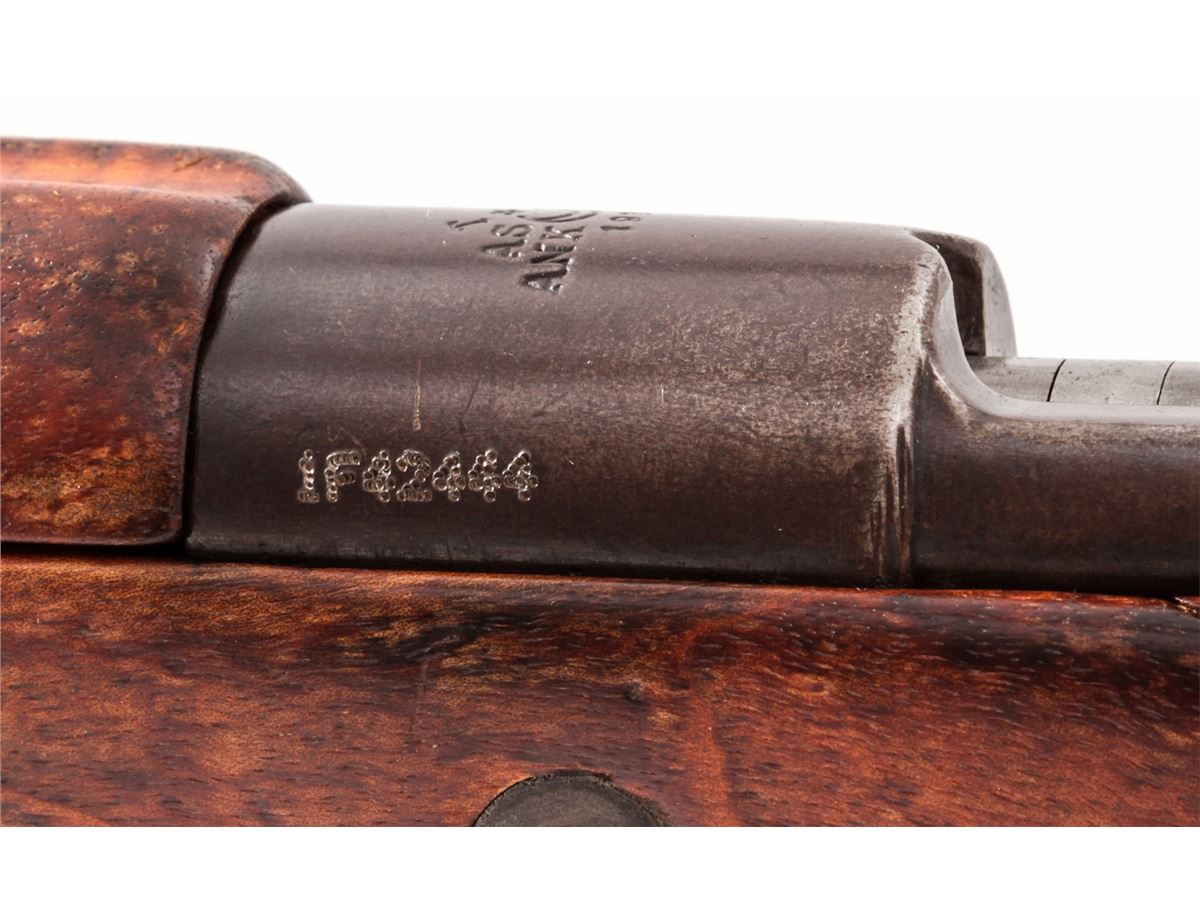 Turkish Mauser Bolt Action Rifle, #1F42444, 8mm, 29-1/2'' barrel, blue finish, bright bolt, European walnut stock. Condition is very good as import marked. Metal surfaces retain 75%-80% toning blue. Stock with oil darkening and scratches. Mismatched small parts. Good action and bore. Est.: $200-$400. (C&R)