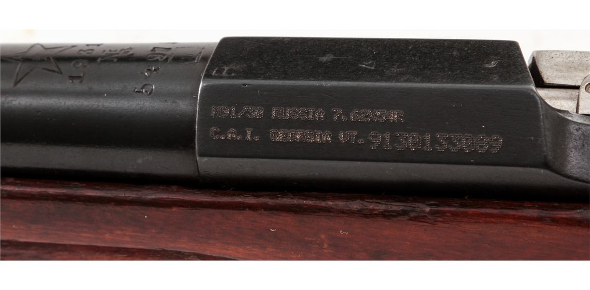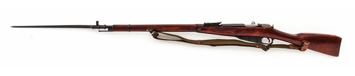 Mosin-Nagant M91/30 Bolt Action Rifle, #9130133089, 7.62x54R cal., 29'' barrel, arsenal blue finish, beech stock, with spike bayonet. Condition is fine as arsenal refinished, retaining approx. 95% blue. Stock shows light handling marks. Good action, very good bore with counter-bored muzzle. Import marked to receiver flat. Est.: $125-$250. (C&R)