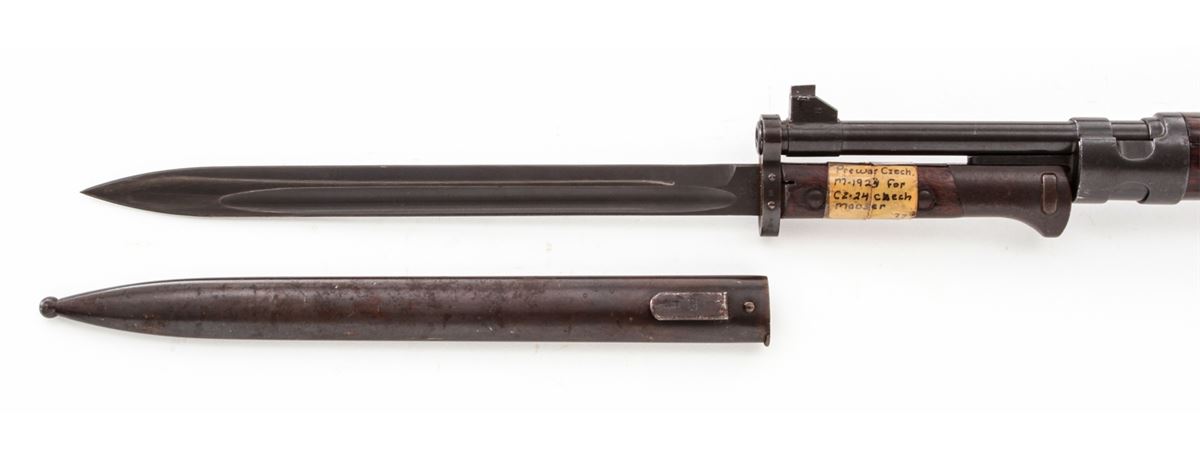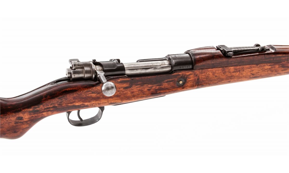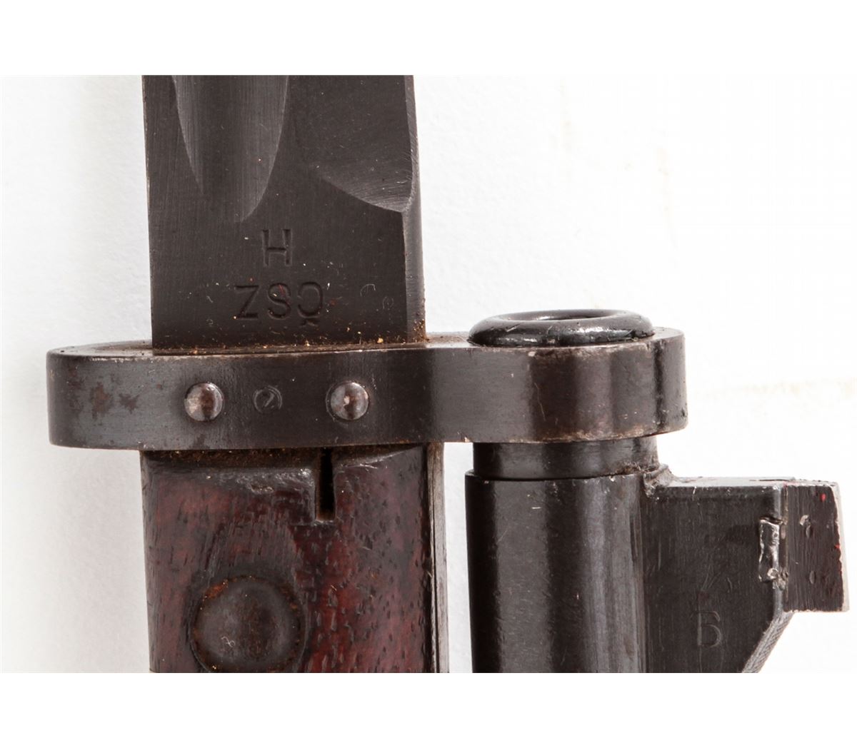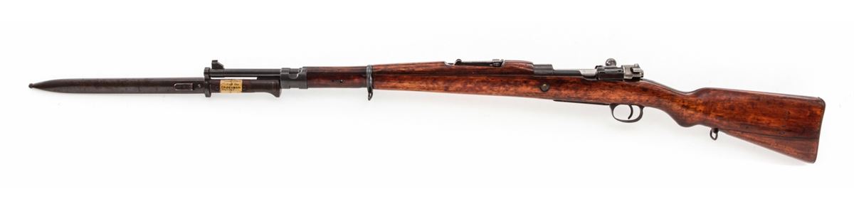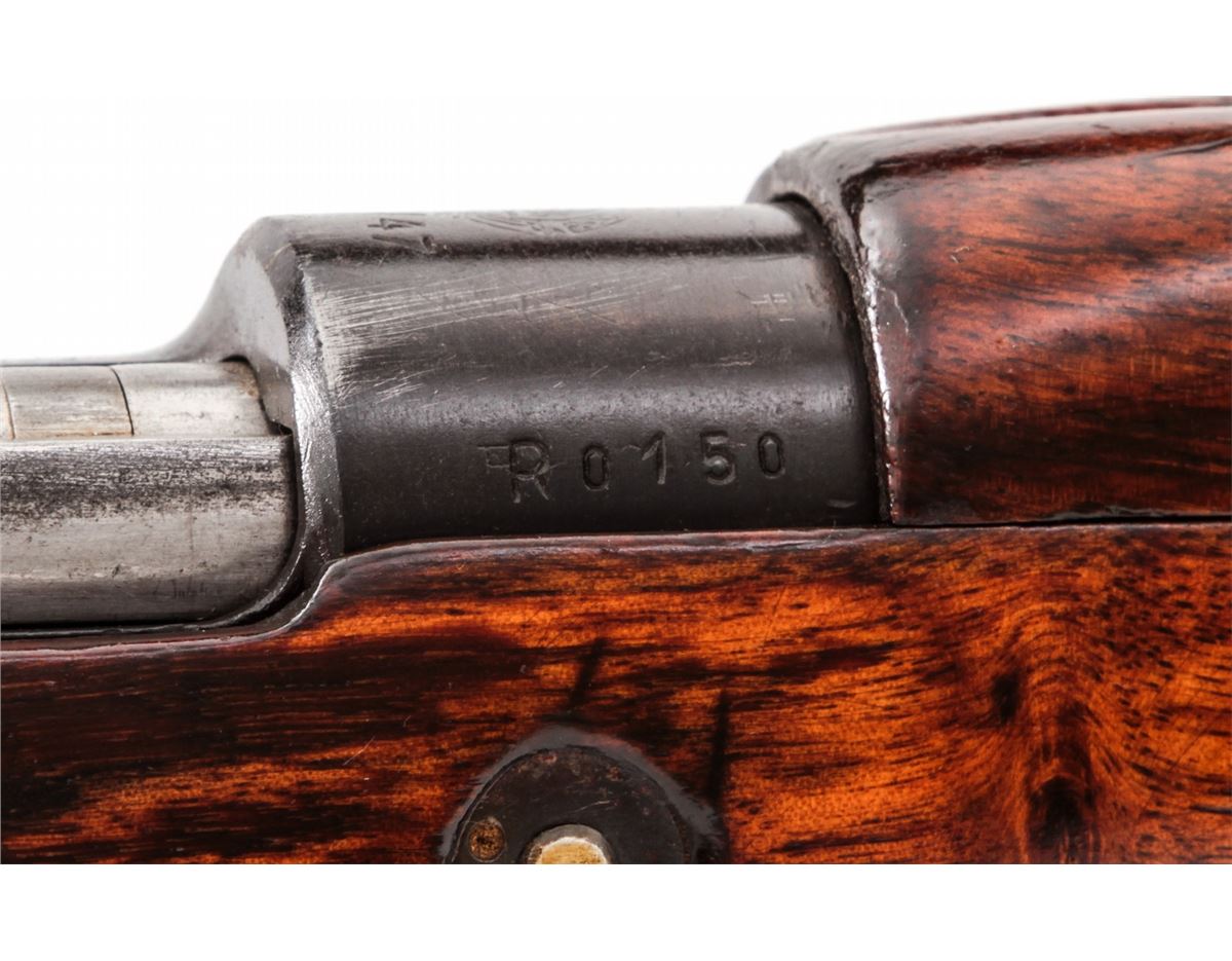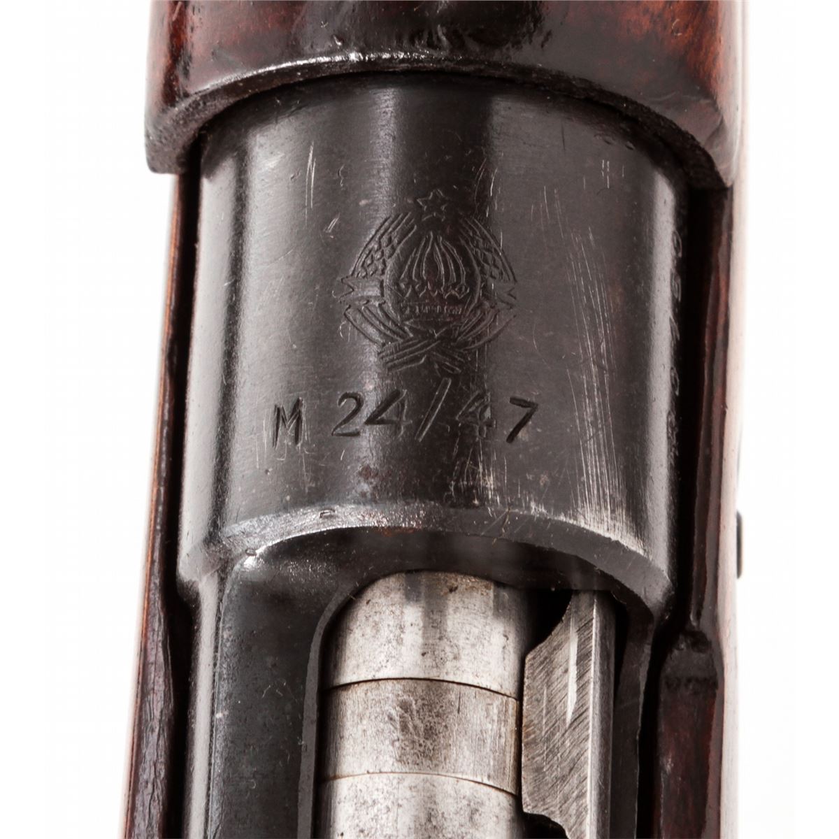 Yugo M24/47 Bolt Action Rifle, #R0150, 8mm, 23-1/2'' barrel, blue finish, European walnut stock, with bayonet and scabbard. Condition is very good retaining approx. 92% arsenal blue. Stock with additional coal of varnish and light general sanding. Mostly matching small parts with force-matched triggerguard. Lightly import marked. Good action and bore. Est.: $200-$400. (C&R)