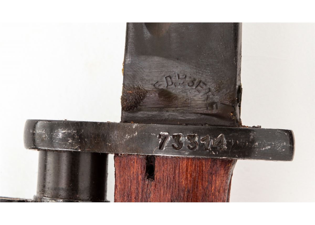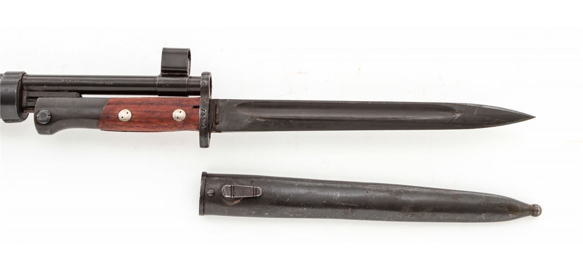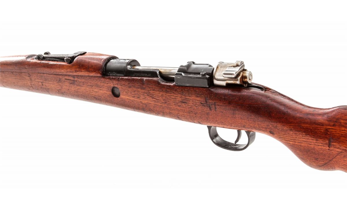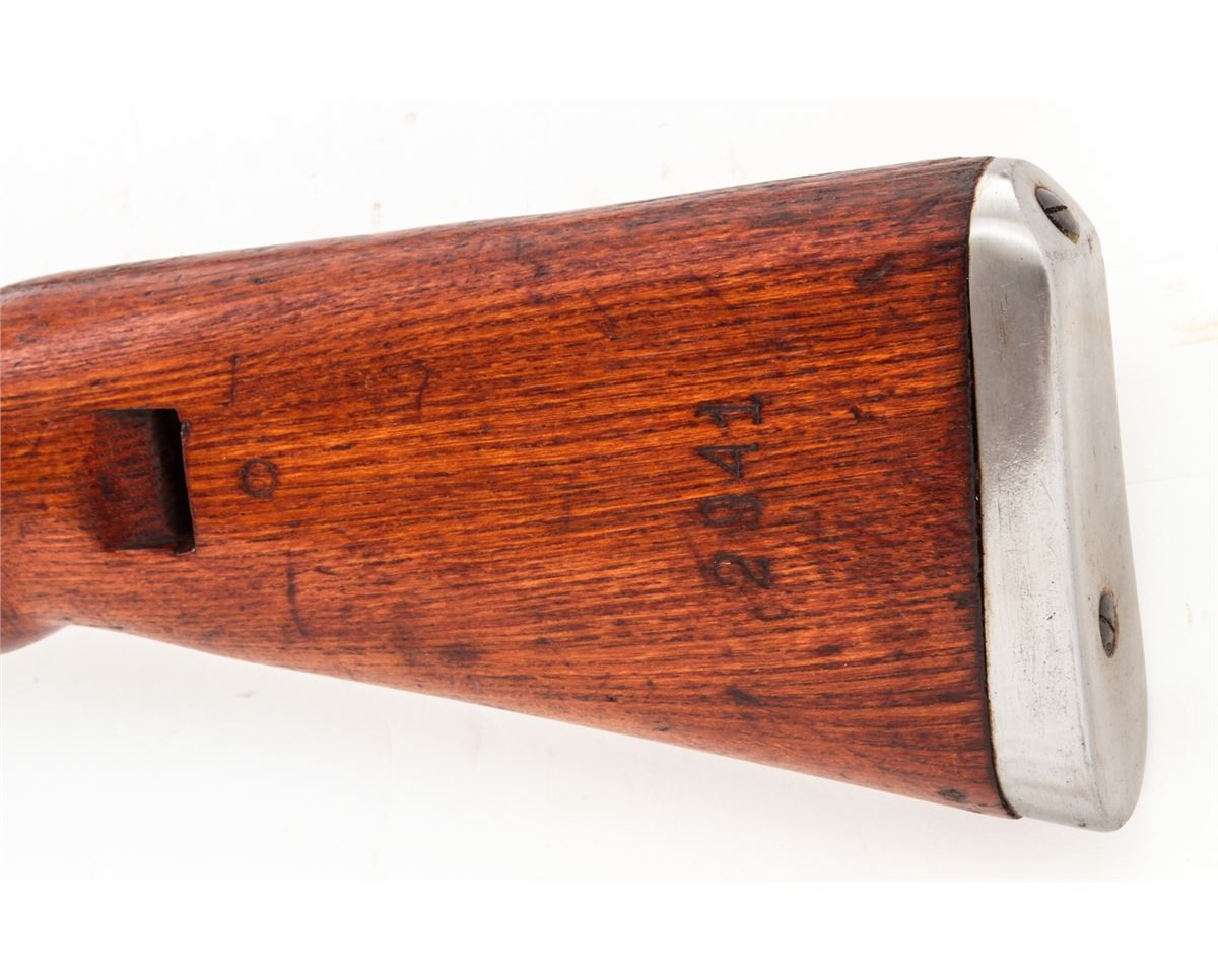 Yugo M48 Bolt Action Rifle, #T2941, 8mm, 23-1/2'' barrel, blue finish, European walnut stock. Condition is fine to near excellent, as lightly import marked, with matching bolt, stock, and triggerguard, and bayonet and scabbard. Metal surfaces retain approx. 95% evenly thinning blue. Rifle is covered in cosmoline. Good action, bright bore. Est.: $250-$450. (C&R)