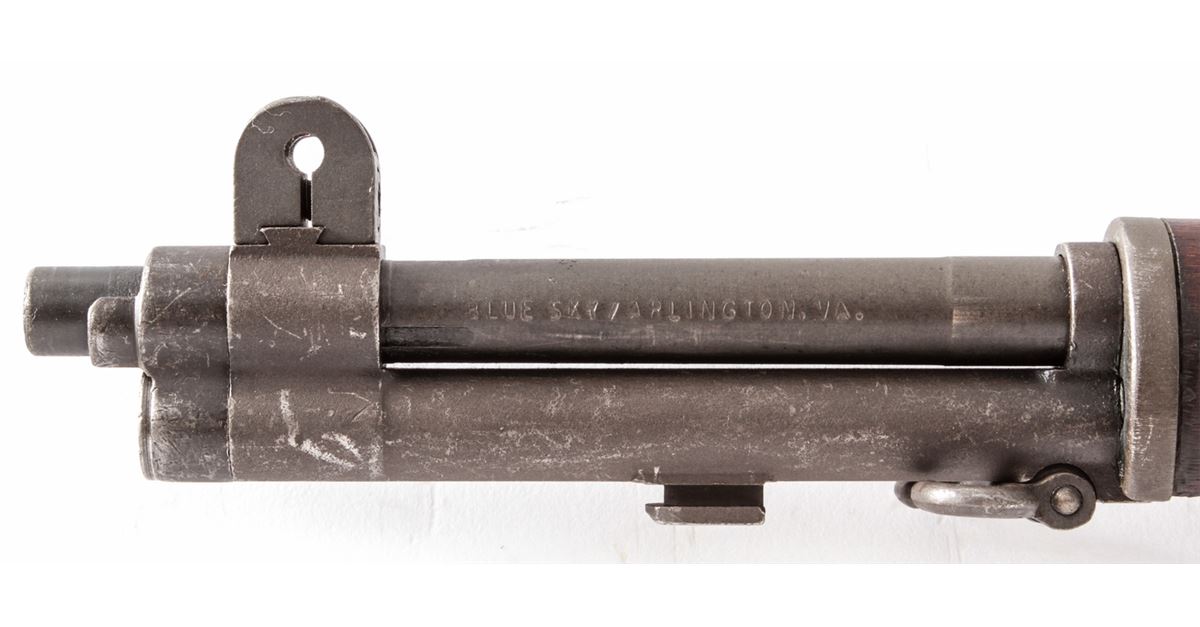 U.S. M1 Garand, by International Harvester, #5174055, .30-06 cal., 24'' barrel by LMR dated 3-54, parkerized finish, walnut stock. Condition is very good with mixed parts and added rubber butt pad to non-H&R walnut stock. Barrel with Blue Sky import markings to left side near muzzle. Good action, very good bore. Est.: $750-$1,000. (C&R)