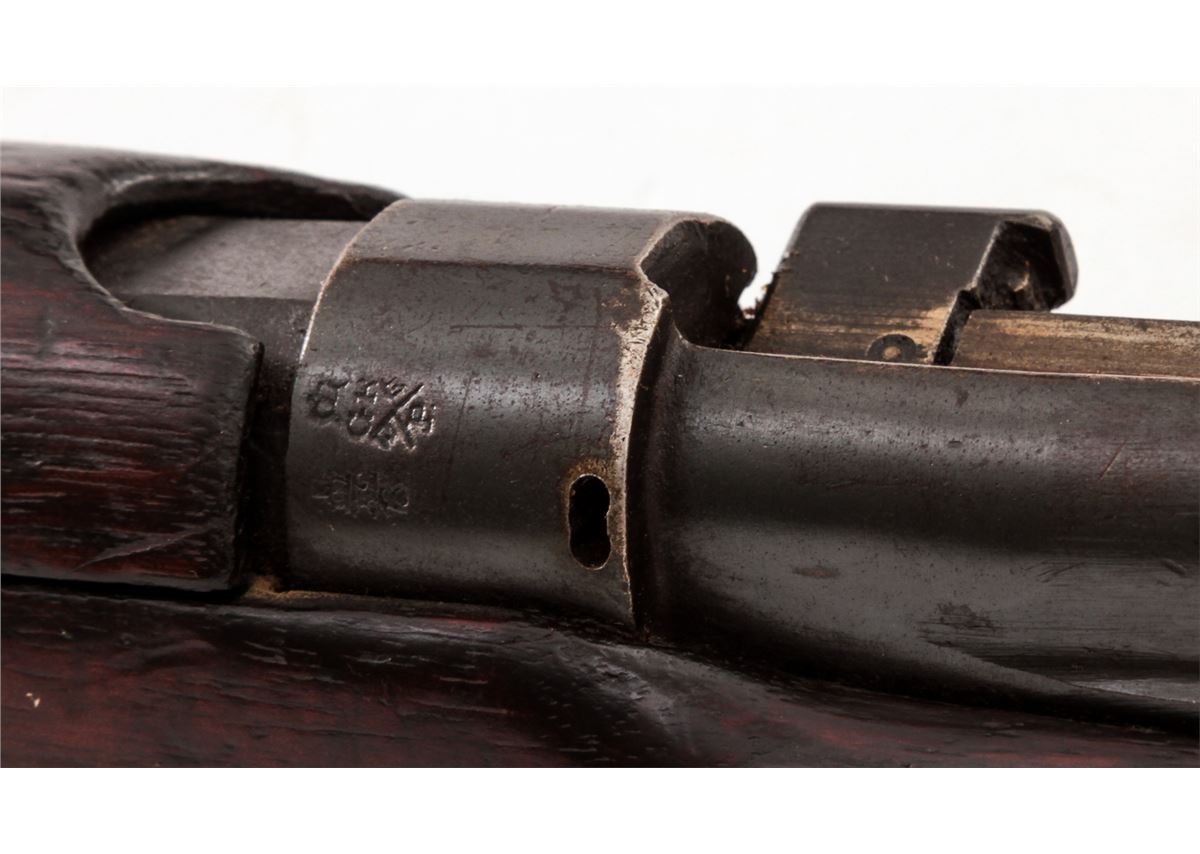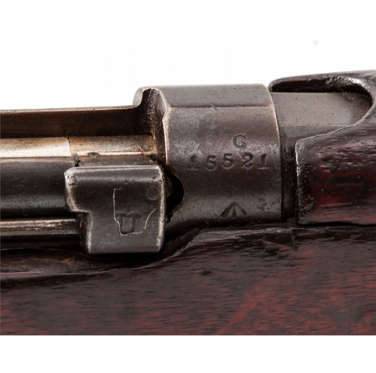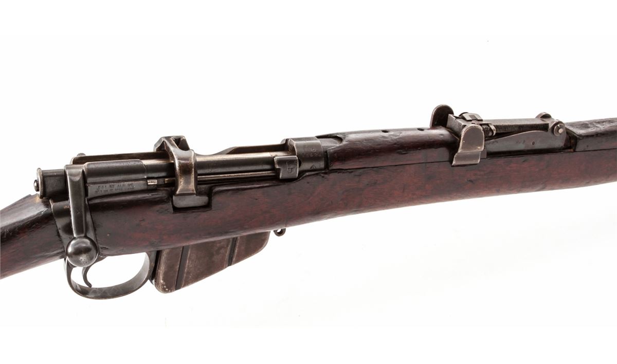 British SMLE No. 1 MK III* Bolt Action Rifle, by BSA (1917), #G15521, .303 cal., 25'' barrel, blue finish, walnut stock and handguard. Condition is very good as lightly import marked to back of frame, retaining approx. 85% arsenal blue. Stock with moderate scuffs and scratches. Missing ID disc to right side of buttstock. Good action, very good bore. Est.: $200-$400. (C&R)