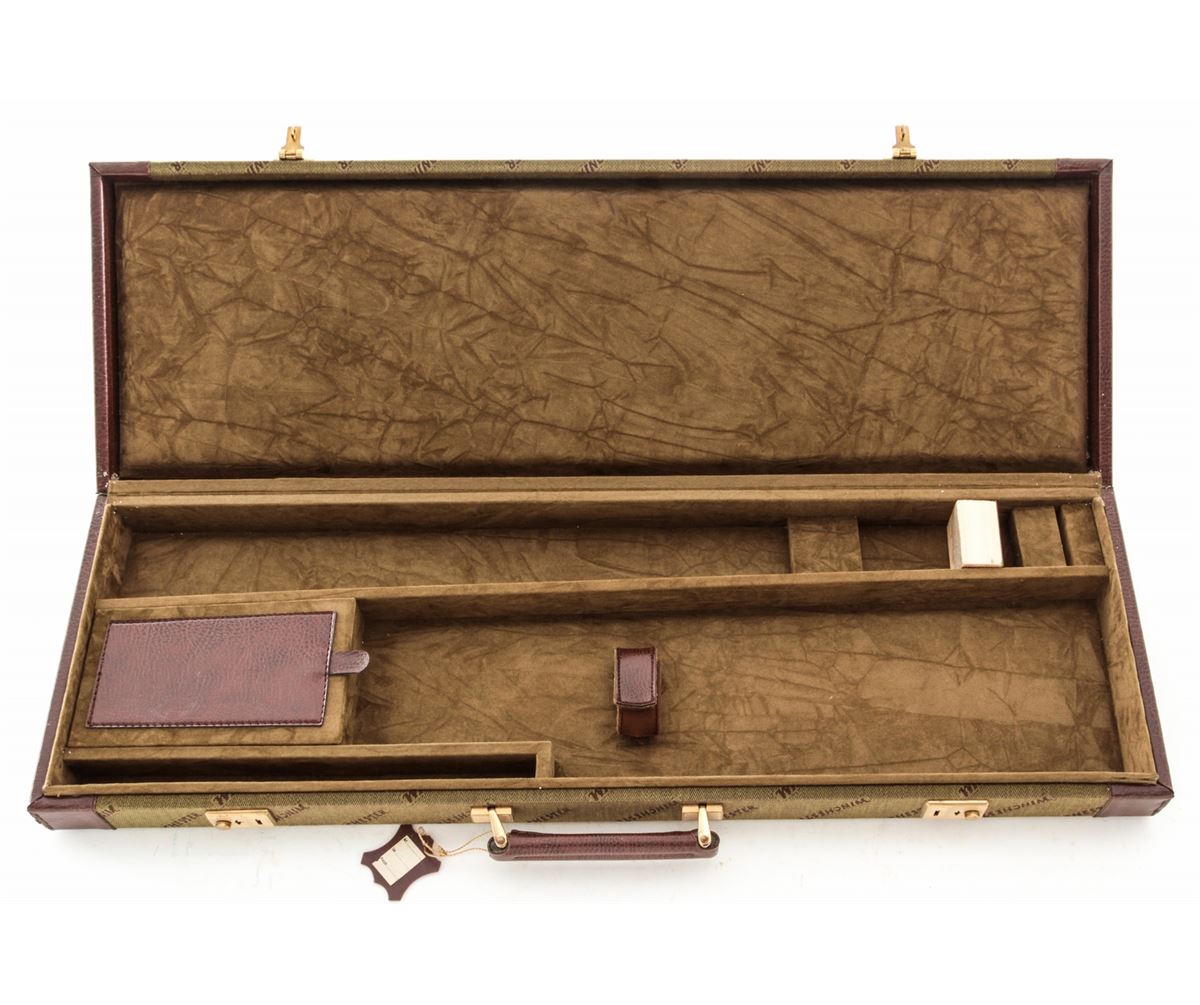 Winchester Signature Model 101 Over/Under Shotgun Case for guns with 28-1/2'' or shorter barrels, fabric exterior and green velour interior, with Emmebi hang tag and two keys. Appears unused with a few dealer storage scuffs. Est.: $150-$200.