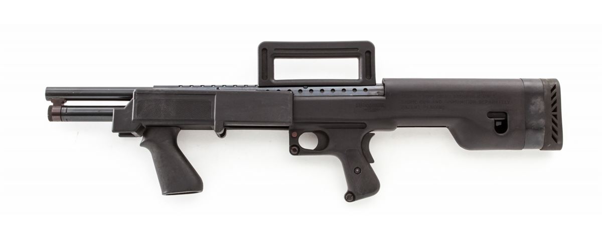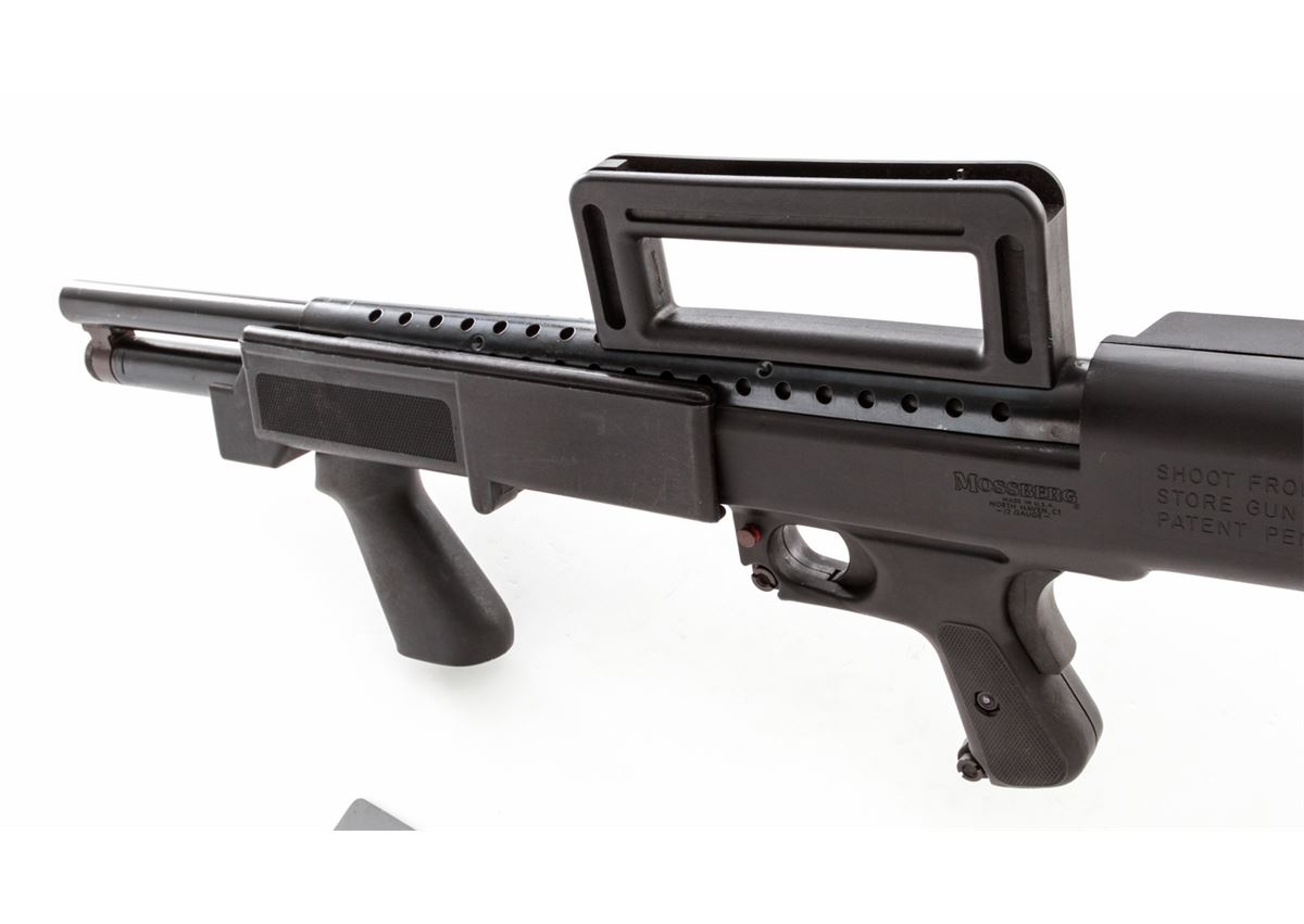 Mossberg 500 Pump Action Shotgun, #K148065, 12 ga., 20'' barrel, blue finish, with added Mossberg Bullpup stock. Condition is fine showing just light use. Est.: $150-$300. (Modern)