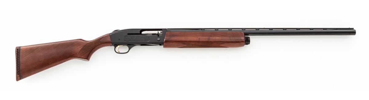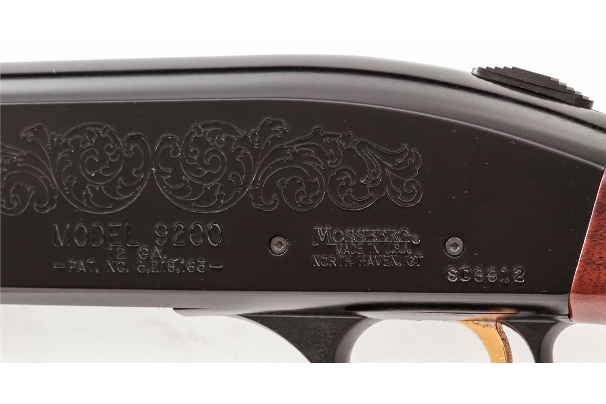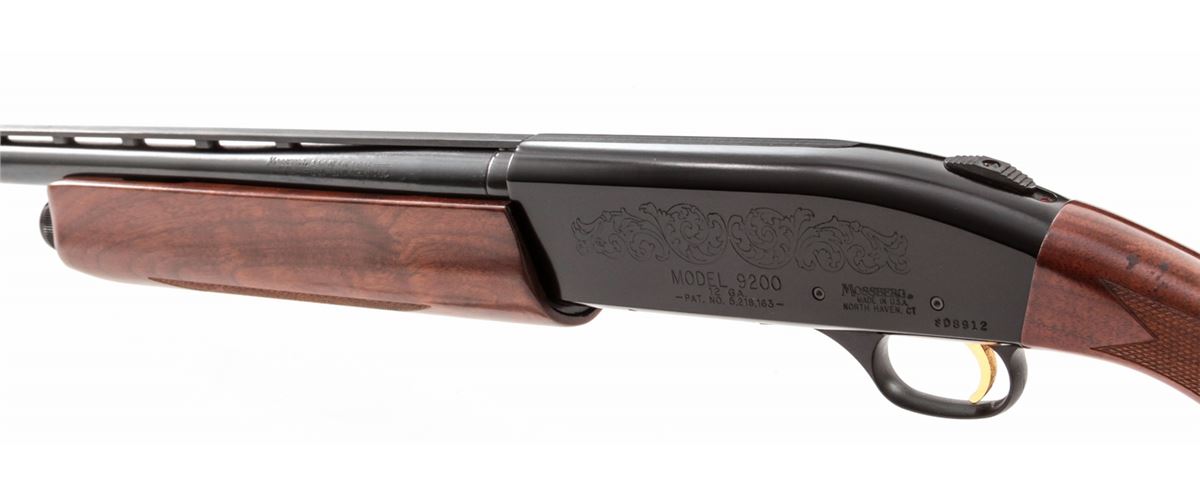 Mossberg Model 9200 Semi-Automatic Shotgun, #SD8912, 12 ga., 28'' vent rib barrel with one Accu-Choke, blue finish, black anodized frame, checkered walnut stock and forend. Condition is excellent. Buttstock shows light marks from handling. Est.: $250-$450. (Modern)