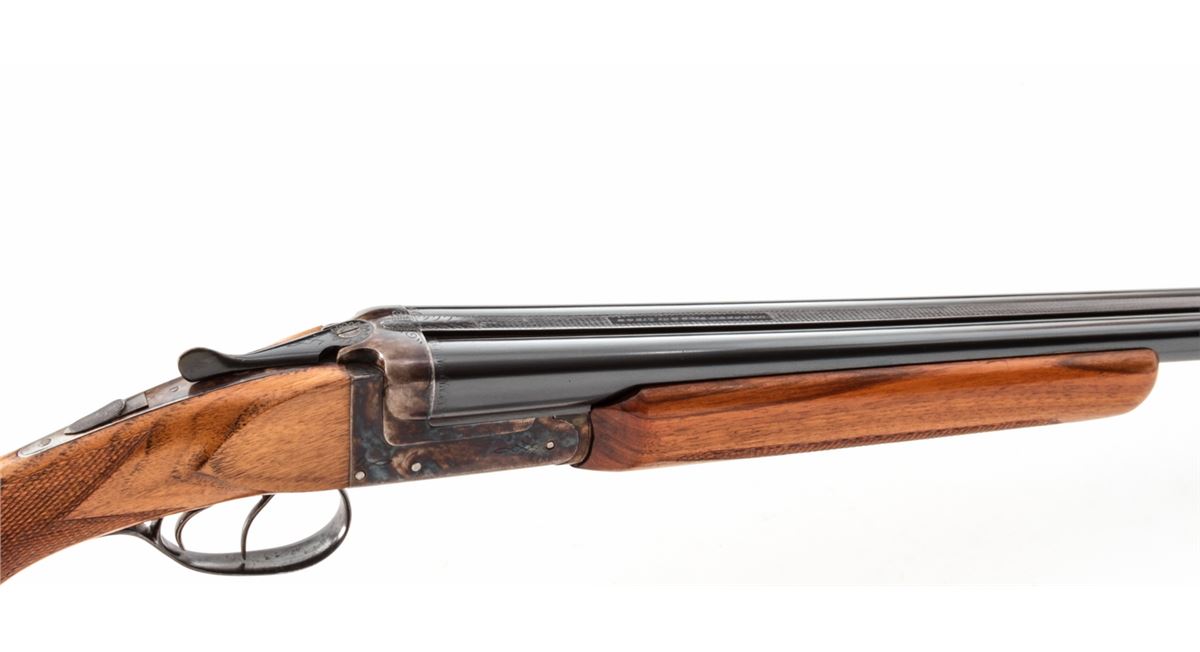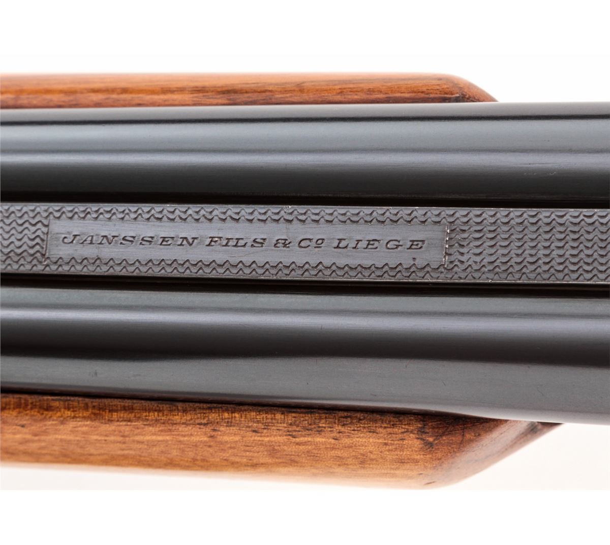 Janssen Side-by-Side Shotgun, made in Belgium, #91497, 16 ga., 28'' barrels choked Full/Mod. with 2-3/4'' chs., blue and case hardened finish, double triggers, checkered European walnut stock, with Greener stock crossbolt. Extractors only. Condition is excellent showing little use. Est.: $300-$500. (C&R)