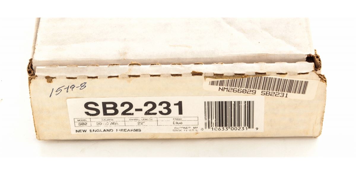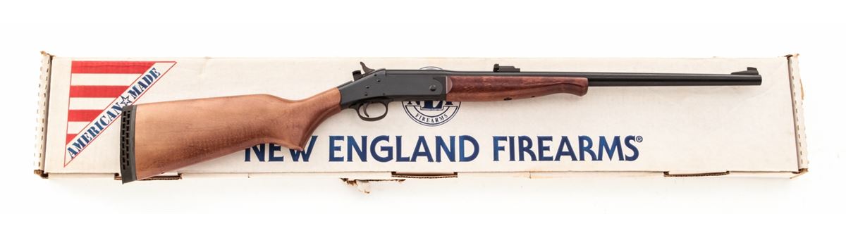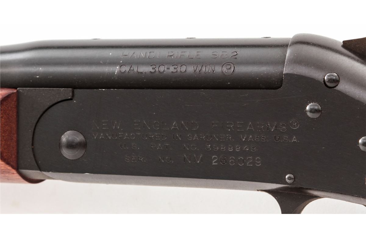 New England Firearms Handi Single Shot Rifle SB2, #NM266029, .30-30 cal., 22'' barrel, blue finish, birch stock. Condition is excellent, appearing as new, in original box. Est.: $200-$400. (Modern)