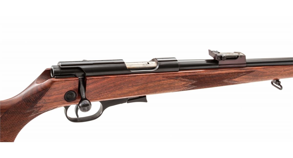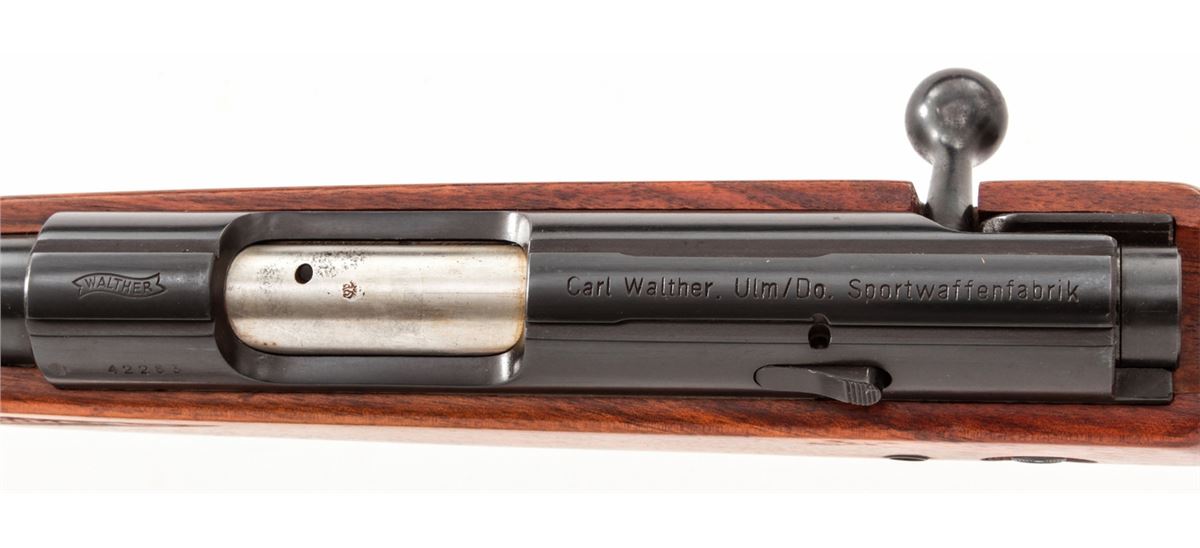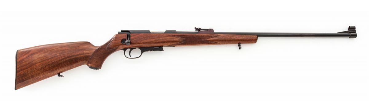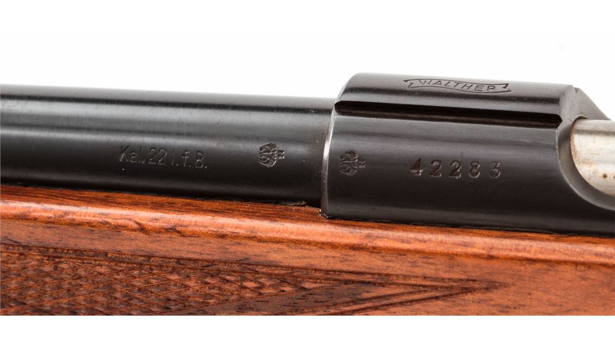 Walther Sport Model Bolt Action Rifle, #42283, .22 LR cal., 24'' barrel, blue finish, checkered European walnut cheekpiece stock, with one magazine. Condition is excellent being reminiscent of the pre-war training rifles used by youth organizations, retaining approx. 96% blue. Light handling marks to stock. Good action and bore. Est.: $300-$500. (Modern)